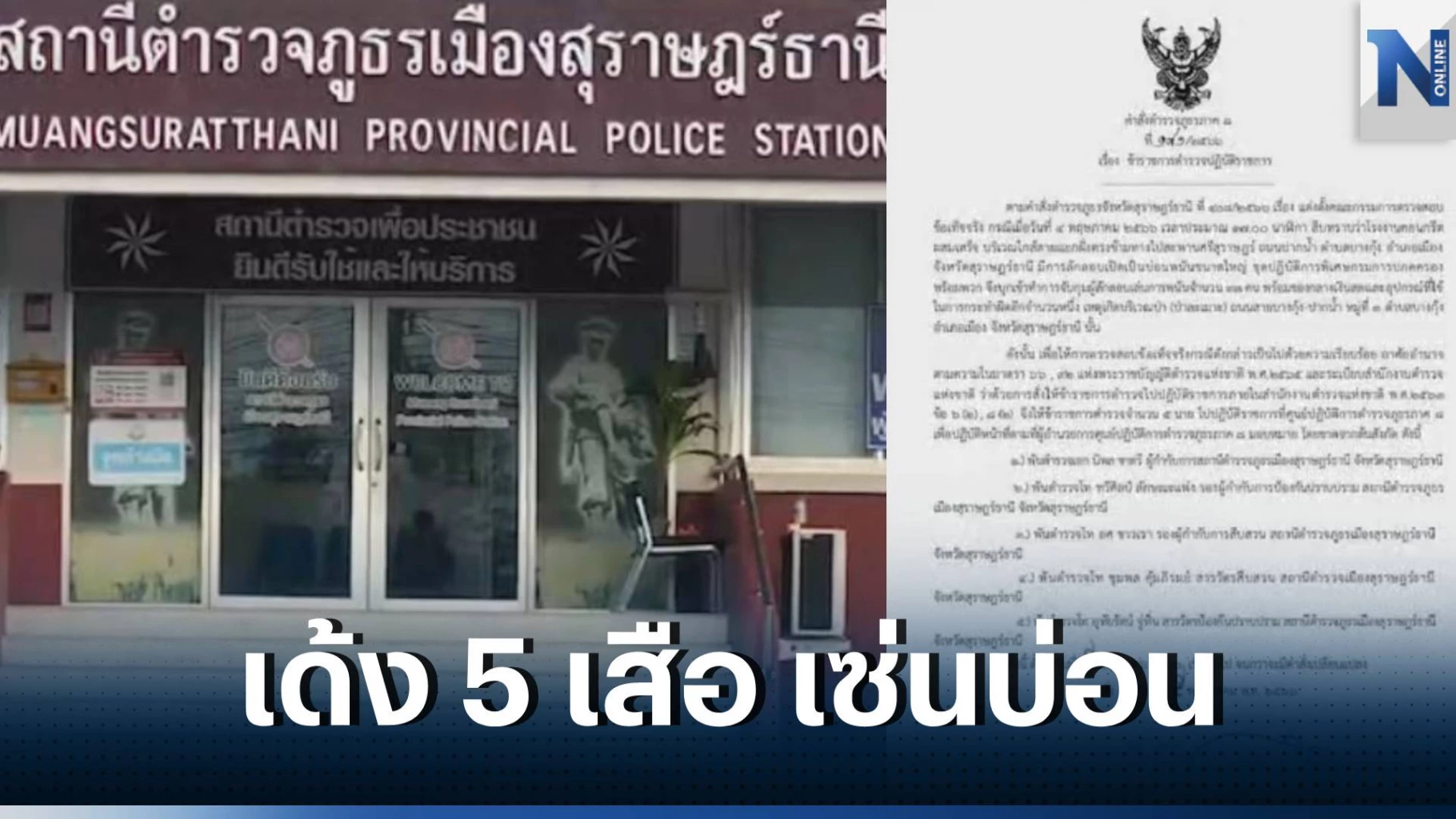 ดังนั้น เพื่อให้การตรวจสอบข้อเท็จจริงกรณีดังกล่าวเป็นไปด้วยความเรียบร้อย อาศัยอำนาจตามความในมาตรา 66 , 92 แห่งพระราชบัญญัติตำรวจแห่งชาติ พ.ศ.2565และระเบียบสำนักงานตำรวจแห่งชาติ ว่าด้วยการสั่งให้ข้าราชการตำรวจไปปฏิบัติราชการภายในสำนักงานตำรวจแห่งชาติ พ.ศ.2563 ข้อ 6 (2) , 8 (2) จึงให้ข้าราชการตำรวจ จำนวน 5 นาย ไปปฏิบัติราชการที่ศูนย์ปฏิบัติการตำรวจภูธรภาค 8 เพื่อปฏิบัติหน้าที่ตามที่ผู้อำนวยการศูนย์ปฏิบัติการตำรวจภูธรภาค 8 มอบหมาย โดยขาดจากต้นสังกัด ดังนี้