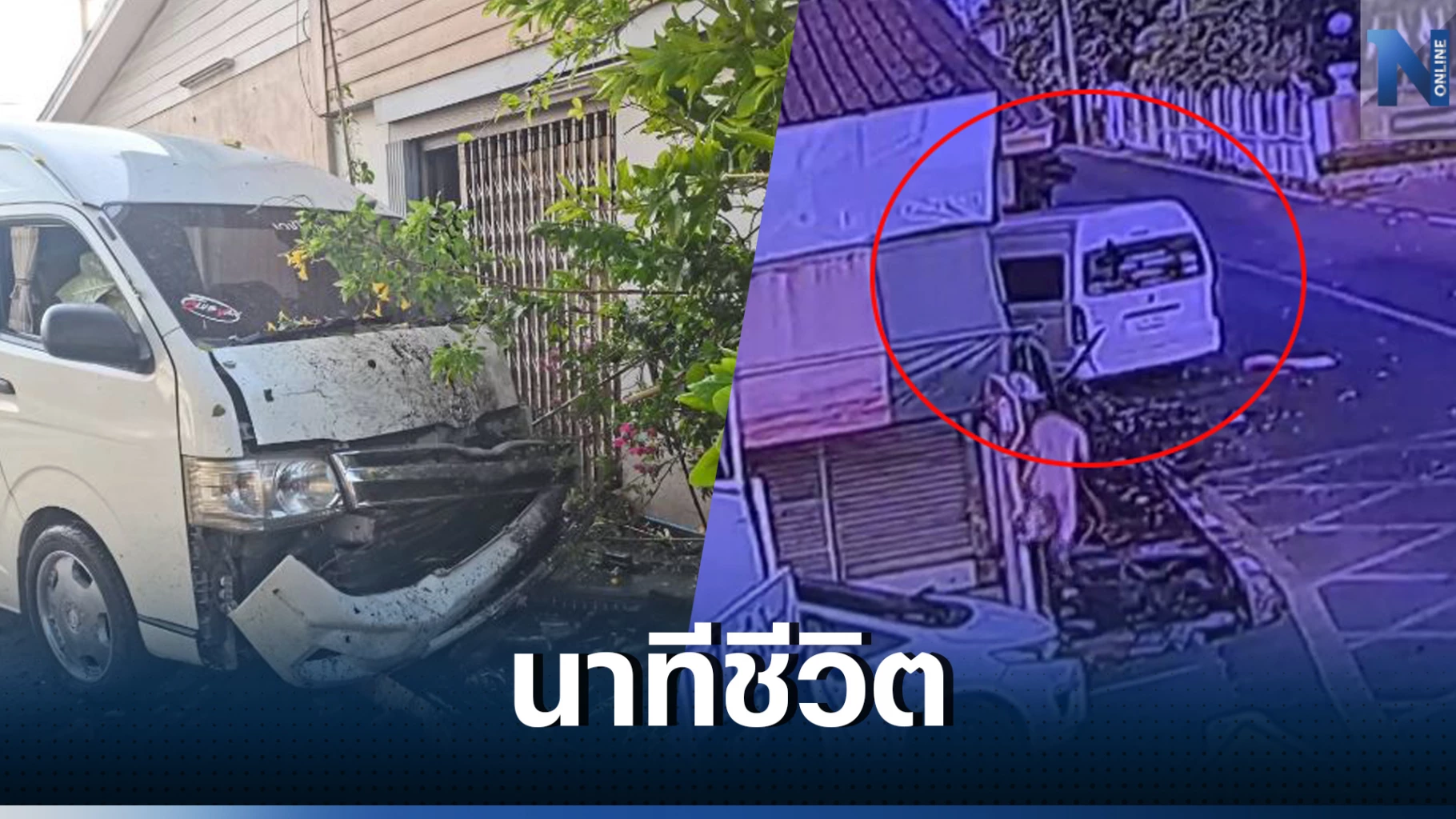 คนขับรถตู้ บอกว่า ขณะขับรถออกจากสี่แยกไฟแดงได้ไม่นาน จู่ ๆ ก็เกิดวูบหลับใน ทำให้รถเสียการควบคุมและพุ่งเข้าชนบ้านที่อยู่ริมถนนทางฝั่งซ้ายเข้าอย่างจัง จนทำให้มีทรัพย์สินได้รับความเสียหายและมีผู้ได้รับบาดเจ็บเป็นคุณปู่และหลานชายดังกล่าว