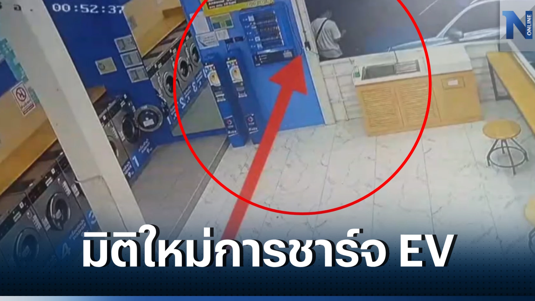 โดยมีภาพจากกล้องวงจรปิด จับภาพชายใส่เสื้อขาว ขับ รถ EV แอบมาเสียบชาร์จไฟ จากปลั๊กไฟร้านซักผ้าอัตโนมัติ ด้วยการนำ รถ EV เข้ามาจอดด้านข้างร้านเป็นเวลานาน ก่อนขับรถออกไป