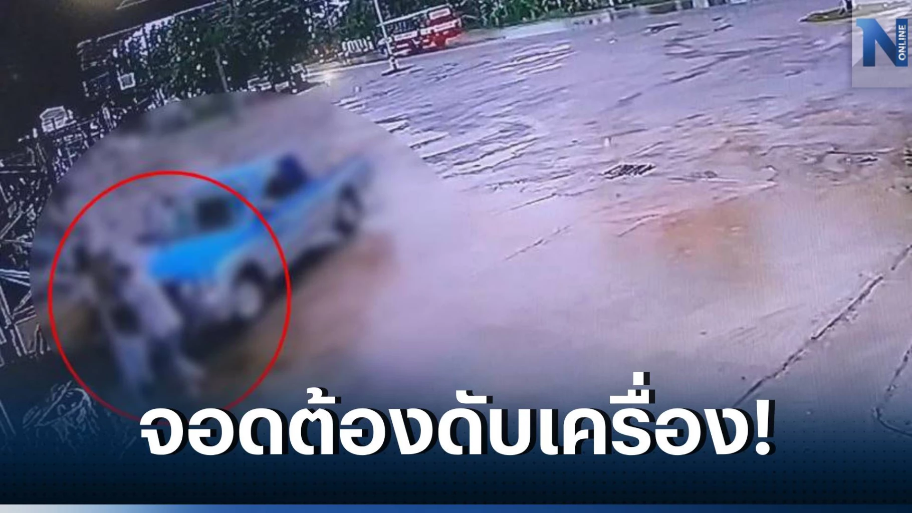 จากการตรวจสอบกล้องวงจรปิดพบว่า ช่วงเวลาเกิดเหตุรถกระบะคันดังกล่าวได้ขับมาจอดที่หน้าร้าน ก่อนที่ฝ่ายหญิงเดินลงจากรถทางประตูฝั่งที่นั่งผู้โดยสาร และเดินอ้อมด้านหน้ารถเพื่อจะเดินไปซื้อของในร้าน โดยจังหวะที่กำลังเดินผ่านหน้ารถ ฝ่ายสามีก็ได้เปิดประตูรถและจะเดินออกจากรถโดยที่ยังไม่ได้เข้าเกียร์ว่าง ดับเครื่องยนต์ และดึงเบรคมือ ทำให้รถยังเคลื่อนตัวไปข้างหน้า คาดว่าด้วยความตกใจคนขับจึงพยายามเข้ามาในรถเพื่อเหยียบเบรค แต่อาจเหยียบโดนคันเร่ง หรือไม่รถก็อาจเคลื่อนตัวไปข้างหน้าตามแรงของเครื่องยนต์ จึงทำให้รถไปชนเข้ากับคนจนได้รับบาดเจ็บดังกล่าว