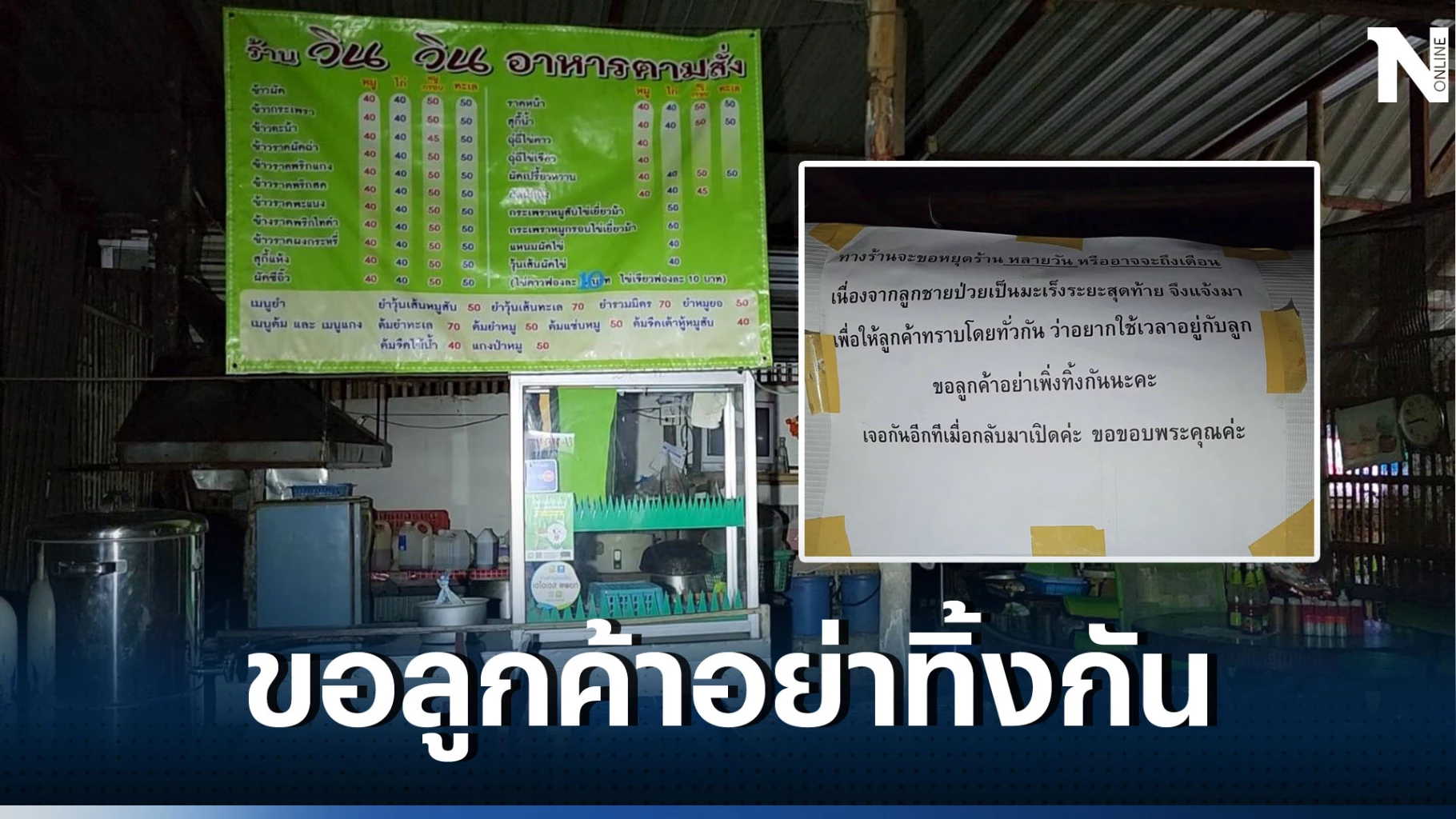 “ขอหยุดร้านหลายวัน หรืออาจจะถึงเดือน เนื่องจากลูกชายป่วยเป็น มะเร็งระยะสุดท้าย จึงแจ้งมาให้ลูกค้าทราบโดยทั่วกัน ว่าอยากใช้เวลาอยู่กับลูก ขอลูกค้าอย่าเพิ่งทิ้งกัน”