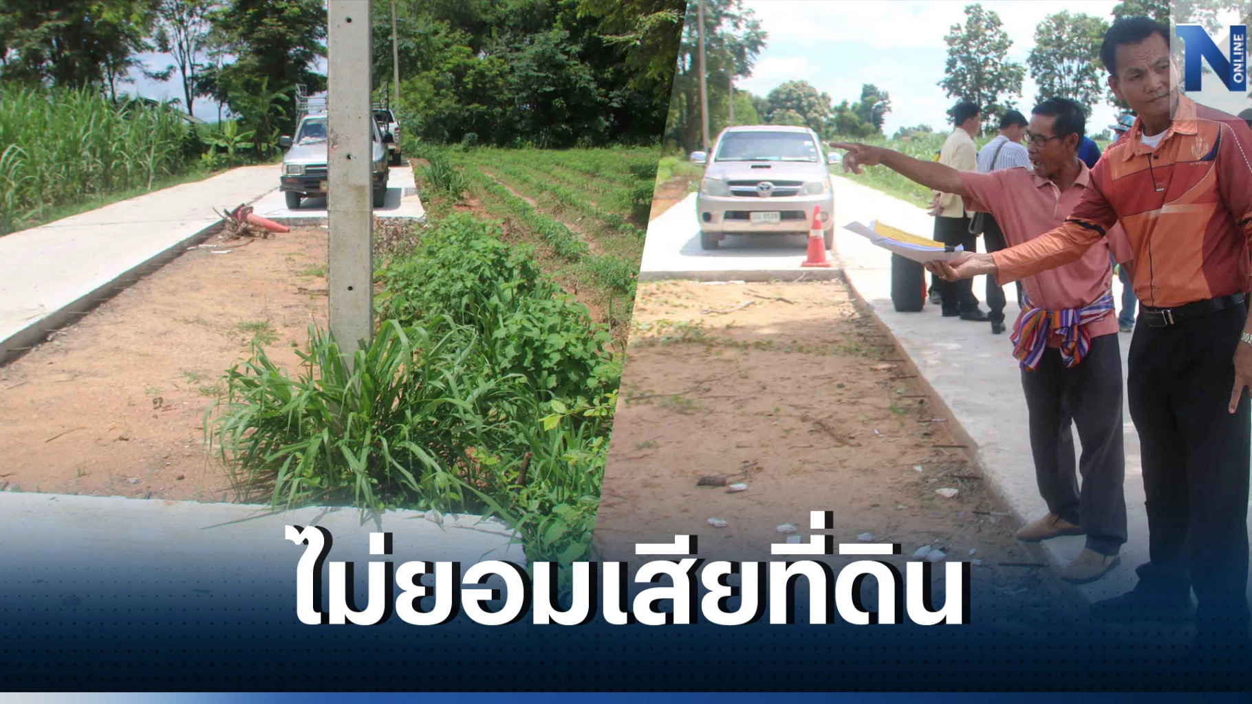 นายวันชัย กล่าวอีกว่า นอกจากนี้ยังอ้างว่าโครงการสร้างถนนรุกล้ำพื้นที่ เรียกร้องค่าเสียหายสูงถึง 250,000 บาท เมื่อฝ่ายเราไม่ทำตามข้อเสนอ จึงไม่ยอมให้ผู้รับเหมาย้ายเสาไฟฟ้าออกจากแนวสร้างถนน ในขณะที่หากจะสอบแนวเขตที่ดินจริงๆ ก็จะได้รู้ชัดเจนว่าแนวเขตเป็นแนวตรงดิ่งหรือโค้งยังไง โครงการก่อสร้างถนนคอนกรีตหรือใครรุกที่ดินที่เป็นทางสาธารณะกันแน่ เพราะหากไม่มีการรังวัดพิสูจน์ความจริง ก็จะไม่มีวันรู้คำตอบ