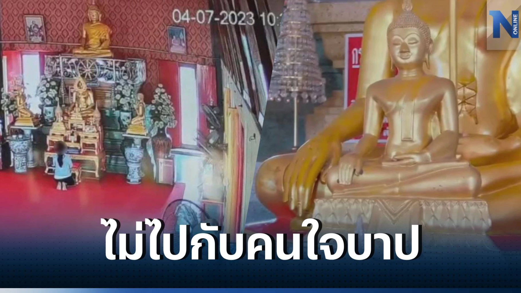 โดยภาพจากกล้องวงจรปิดภายในโบสถ์ยังจับภาพได้ชัดเจน พบว่าโจรหญิงรายนี้ เป้าหมายในตอนแรกตั้งใจจะขโมยหลวงพ่อขาวจำลอง ซึ่งเป็นพระประธานและเป็นพระคู่บ้านกับชุมชนอีกทั้งเป็นพระประธานที่มีชื่อเสียงของทางวัด แต่จากภาพจะเห็นได้ว่าหญิงคนดังกล่าวพยามยกหลวงพ่อขาวแต่ยกไม่ขึ้น จึงหันไปยกหลวงพ่อโสธรจำลองที่วางด้านข้างแทนก่อนจะนำไปใส่กระเป๋าเป้ที่เตรียมมาแล้วเดินออกจากวัดไปทำทีเหมือนไม่มีอะไรเกิดขึ้น
