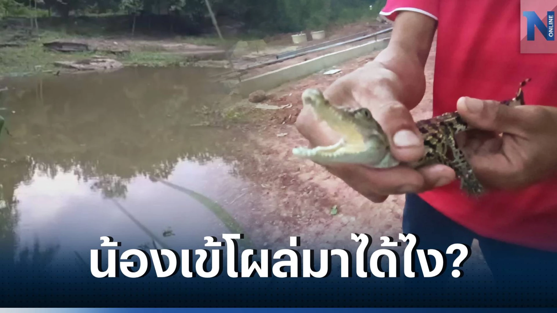 ชาวบ้านผวา พบลูกจระเข้โผล่ในบ่อน้ำข้างบ้าน