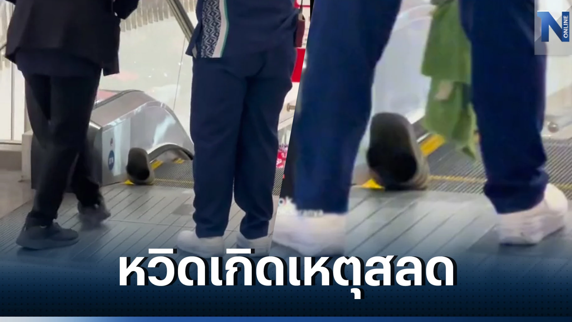 บันไดเลื่อนหยุดทำงานลงต้องเดินเท้าขึ้นมาแทน ก่อนที่ต่อมาจะมีแม่บ้านและเจ้าหน้าที่รักษาความปลอดภัยของศูนย์การค้าเข้ามาดูแล้วพยายามช่วยกันดึงรองเท้าแตะที่ติดบันไดเลื่อนอยู่เพื่อเอาออก