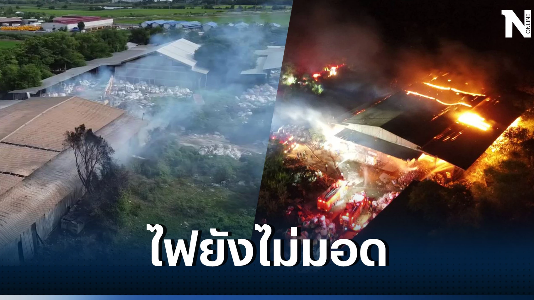 แม้เวลาจะผ่านไปแล้วมากกว่า 10 ชั่วโมง เจ้าหน้าที่ควบคุมเพลิงไหม้โกดังเก็บกระดาษ โรงงานรีไซเคิล ได้ในวงจำกัด แต่ยังคงมีแสงเพลิงและกลุ่มควันลอยออกมาอย่างต่อเนื่อง