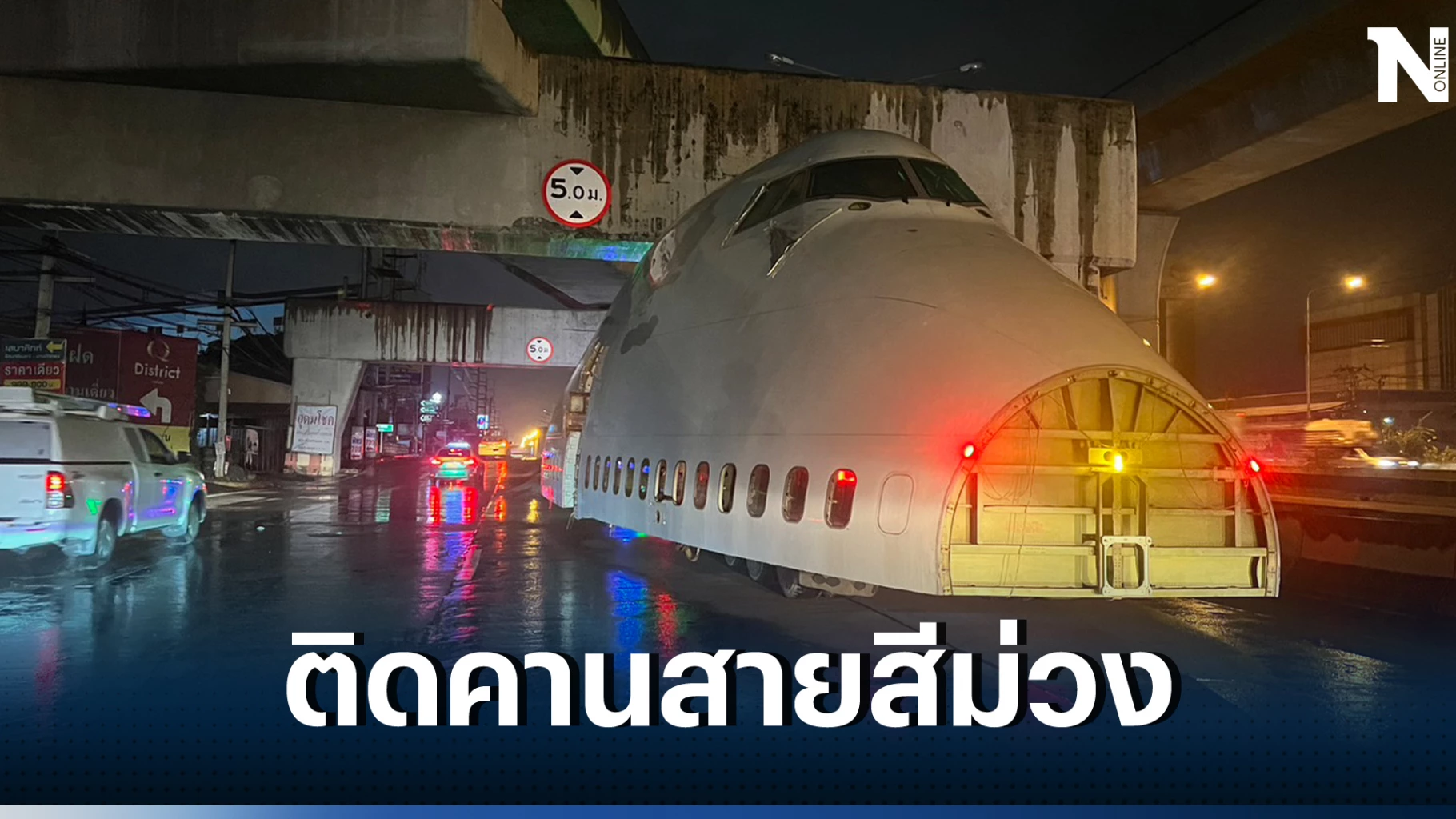ในที่เกิดเหตุรถบรรทุกพ่วง 18 ล้อบรรทุกชิ้นส่วนของเครื่องบินโบอิ้ง 747 จำนวน 5 คัน แยกชิ้นส่วน มีทั้งส่วนลำตัวเครื่องบินและปีกจอดหยุดนิ่งไม่สามารถไปต่อ สาเหตุเพราะรถบรรทุกพ่วงคันหน้าซึ่งบรรทุกโครงลำตัวของเครื่องบินที่มีความสูงเกินไม่สามารถขับผ่านคานตอม่อของรถไฟฟ้าสายสีม่วงได้