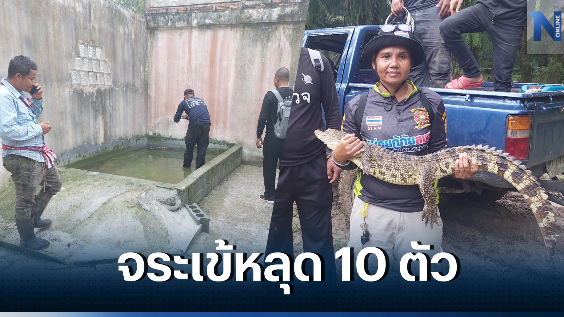25 กรกฎาคม 2566 จากกรณีฝนตกหนักในพื้นที่ อ.ทุ่งใหญ่ จ.นครศรีธรรมราช ทำให้เกิดน้ำล้นตลิ่งหลายจุด โดยเฉพาะริมคลองสายหลักเชื่อมต่อ จ.กระบี่ โดยเมื่อคืนที่ผ่านมา นายณัฐจักร (สงวนนามสกุล) อายุ 34 ปี เจ้าของบ่อเลี้ยงจระเข้ ได้แจ้งนายพนธกร บุญทอง ผู้ใหญ่บ้านหมู่ 4 บ้านเสม็ดจวนใต้ ต.กุแหระ อ.ทุ่งใหญ่ จ.นครศรีธรรมราชว่า มีจระเข้ 10 ตัว หลุดออกไปจากบ่อเลี้ยง ผู้ใหญ่บ้านจึงประสานนายนิคม สุขสวัสดิ์ หัวหน้าชุดไกรทองกรมประมง พร้อมเจ้าหน้าที่ 10 นาย และเจ้าหน้าที่กู้ภัยสมาคมสยามรวมใจปู่อินทร์ทุ่งใหญ่
