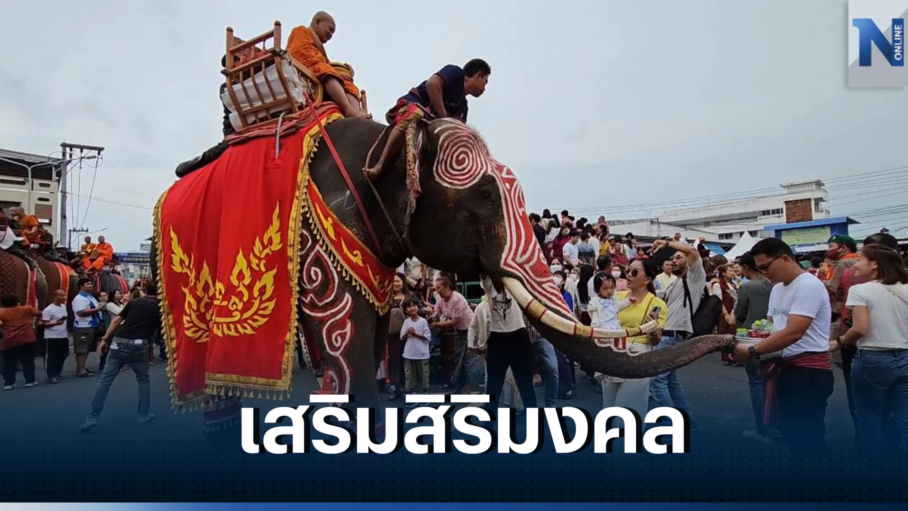 ทั้งนี้ พระเถระชั้นผู้ใหญ่ พร้อมด้วยสงฆ์ จำนวน 71 รูป นั่งหลังช้างจำนวน 37 เชือก เดินออกรับบิณฑบาตร จากพุทธศาสนิกชน และนักท่องเที่ยว ที่ยืนอยู่บนอัฒจันทร์ จำนวน 4 ซุ้ม สับเปลี่ยนหมุนเวียนกันจำนวนหลายรอบ เพื่อให้พุทธศาสนิกชนได้ตักบาตรข้าวสาร อาหารแห้ง น้ำดื่ม และถวายปัจจัยถวายแด่พระสงฆ์ ขอพรจากพระสงฆ์ เพื่อความเป็นศิริมงคลแก่ชีวิต และเป็นการสืบทอดวัฒนธรรมประเพณีอันดีงามของชาวไทยพุทธ รวมทั้งเป็นการส่งเสริมการท่องเที่ยวของจังหวัดสุรินทร์