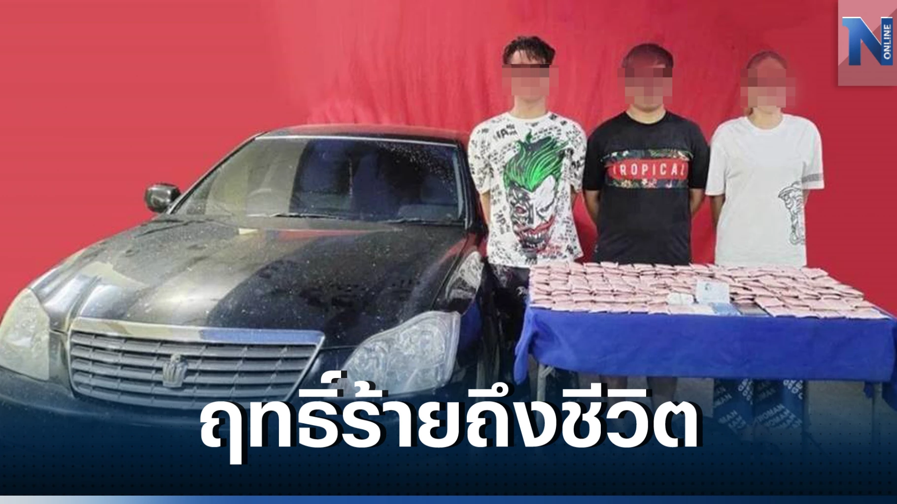 ผลการตรวจพบคนขับเป็นชาย 1 คน เมื่อจับกุมตัวแล้วได้ขยายผลจับกุมผู้เกี่ยวข้องอีก 2 คนเป็นชาย 1 คนและหญิง 1 คน รวมผู้ต้องหาทั้งหมดจำนวน 3 คน และสามารถยาเสพติดประเภท Happy Water ได้ตามดังกล่าวจึงได้นำตัวไปดำเนินคดีตามกฎหมาย