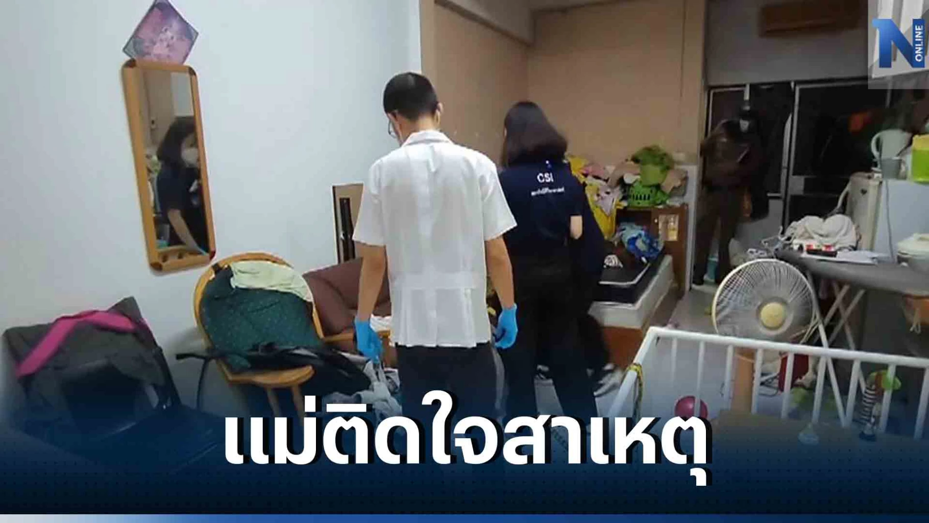 ก่อนเกิดเหตุตนเองออกไปทำธุระข้างนอกเวลาประมาณ 16.00 น. โดยให้เด็กอยู่กับลูกสาวตนเองอายุ 2 ขวบครึ่ง และลูกชายบุญธรรมอายุ 4 ขวบ ตนเองวางเด็กไว้บนที่นอนและเอาผ้าห่มวางไว้บนตัวเด็ก กระทั่ง 18.00 น. กลับมาถึงบ้านถึงกับช็อกที่เจอเหตุการณ์แบบนี้