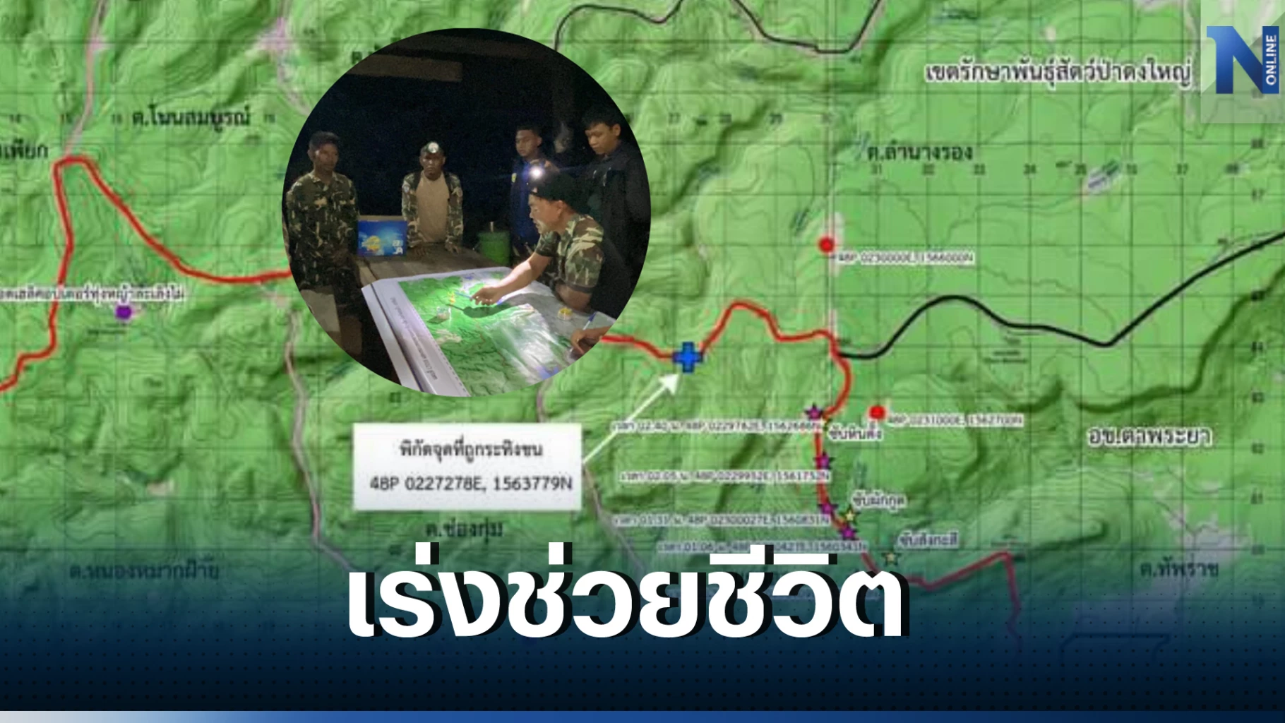 ภายหลังเกิดเหตุได้สนธิกำลังเจ้าหน้าที่หน่วยกู้ภัยอุทยานแห่งชาติปางสีดา อุทยานแห่งชาติตาพระยา ฐานป้องกันรักษาป่า นม.1 เจ้าหน้าที่จากส่วนอนุรักษ์และป้องกันทรัพยากร สำนักบริหารพื้นที่อนุรักษ์ที่ 7 จำนวน 28 นาย เพื่อเดินเท้าเข้าไปนำตัวผู้บาดเจ็บ ออกมาจากพื้นที่ป่าจุดเกิดเหตุ เนื่องจากเฮลิคอปเตอร์ของกองการบินอนุรักษ์ทรัพยากรธรรมชาติฯ ไม่สามารถลงจอดได้ โดยคาดว่าในเวลาประมาณ 14.30 น. จะสามารถนำตัวผู้บาดเจ็บออกมาจากป่าและนำส่งโรงพยาบาลได้
