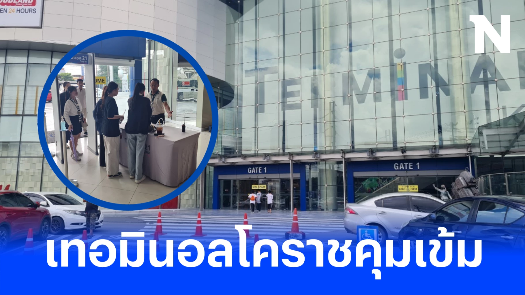 วันนี้ (4 ตุลาคม 2566) ผู้สื่อข่าวได้ลงพื้นที่ไปยัง ห้างสรรพสินค้าเทอร์มินอล 21 โคราช พบว่ามีการวางมาตรการป้องกันความปลอดภัยอย่างเข้มงวด โดยมีเจ้าหน้าที่ของห้างฯ นำเครื่องสแกนโลหะ วัตถุระเบิด และอาวุธปืน มาติดตั้งตามประตูทางเข้าทุกจุด รวม 7 จุด พร้อมมีเจ้าหน้าที่ประจำอยู่จุดละ 3 นาย รวมทั้งมีเจ้าหน้าที่ใช้เครื่องสแกนโลหะแบบพกพา คอยสแกนกระเป๋าของผู้ที่เข้ามาภายในห้างทุกคนอย่างละเอียดอีกครั้ง เพื่อสร้างความมั่นใจในความปลอดภัยให้กับประชาชนที่มาท่องเที่ยวและซื้อของภายในห้าง