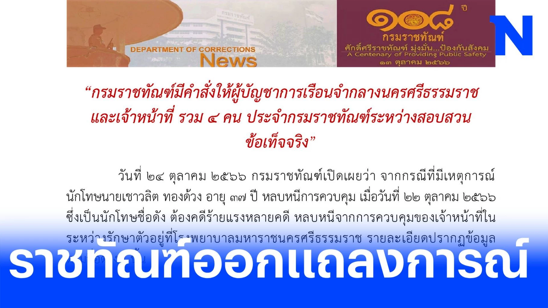 “กรมราชทัณฑ์มีคำสั่งให้ผู้บัญชาการเรือนจำกลางนครศรีธรรมราชและเจ้าหน้าที่ รวม 4 คน ประจำกรมราชทัณฑ์ระหว่างสอบสวนข้อเท็จจริง”