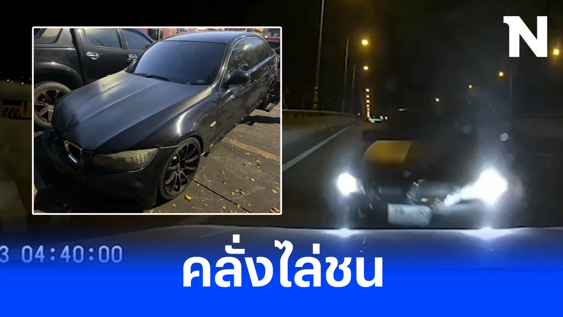 เปิดคลิปหนุ่มคลั่ง ขับรถหรู ไล่หนุ่ม MC แซงได้ย้อนศรพุ่งชน หงายการ์ดป่วยจิต
