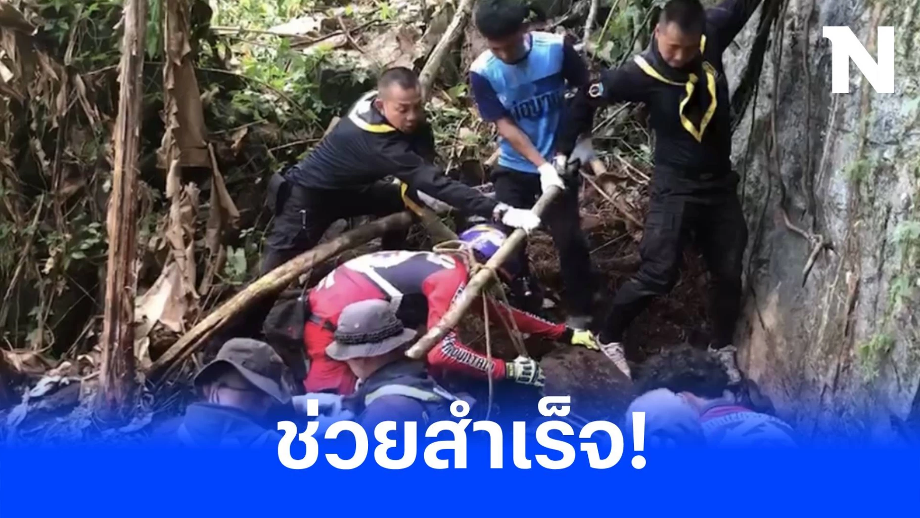 นายณรงค์ เปรื่องคำ หัวหน้าทีมกู้ภัยและผู้จัดการหน่วยกู้ภัยมูลนิธิเพชรเกษม เปิดเผยว่า ภายหลังใช้นักจิตวิทยาเข้ามาพูดคุยกับผู้ประสบเหตุเพื่อให้ ผ่อนคลายความตึงเครียด ก่อนงัดหินเพื่อเปิดปากถ้ำ และโรยตัวเข้าไปช่วยผู้ประสบเหตุได้สำเร็จ เนื่องจากผู้ประสบเหตุมีความอ่อนล้าอย่างมาก จึงเร่งนำตัวส่งโรงพยาบาลท่าสองยาง เพื่อรักษาอาการบาดเจ็บต่อไป