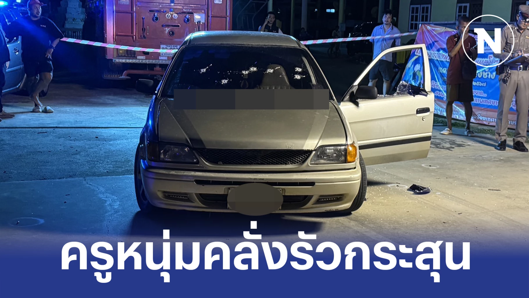 ที่เกิดเหตุพบรถยนต์เก๋ง โตโยต้า สีบรอนทอง ทะเบียนอ่างทอง ที่กระจกหน้ารถ มีรอยถูกยิงด้วยกระสุนปืนจำนวน 8 นัด ที่กระจกด้านคนขับถูกกระสุนปืนยิงจนกระจกแตก ที่กระจกประตูหลังรถ มีรอยกระสุนปืน 1 นัด ที่พื้นพบปลอกกระสุนปืนตกอยู่จำนวนหลายปลอก ภายในรถบริเวณที่นั่งคนขับพบศพ นางดารณี หรือ นิว อายุ 29 ปี ครูอัตราจ้างของโรงเรียนวัดโบสถ์ ที่เบาะด้านข้างคนขับพบศพ นายนิพนธ์ อายุ 59 ปี พ่อของคนขับรถที่เสียชีวิต เจ้าหน้าที่ตำรวจกันพื้นที่บริเวณที่เกี่ยวข้อง ให้ห่างออกจากที่เกิดเหตุ