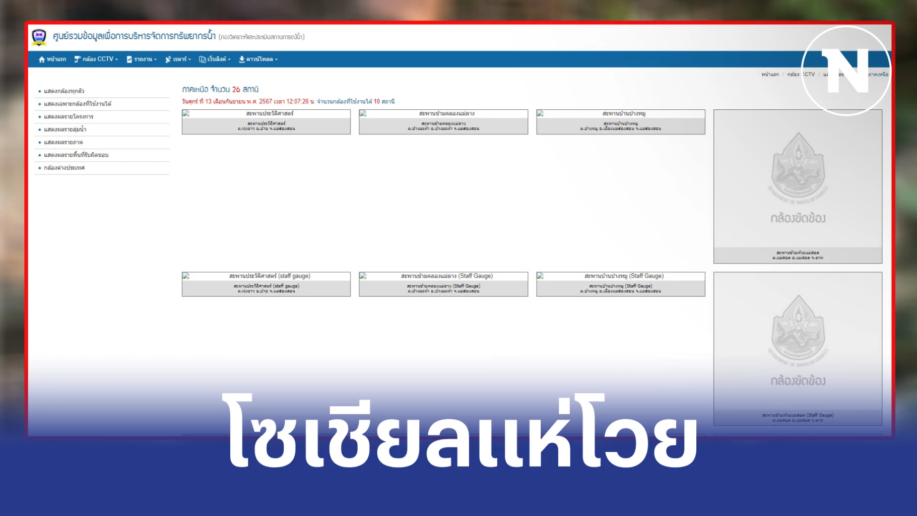 ภาคเหนือ 26 สถานี กล้องที่ใช้งานได้ 10 สถานี