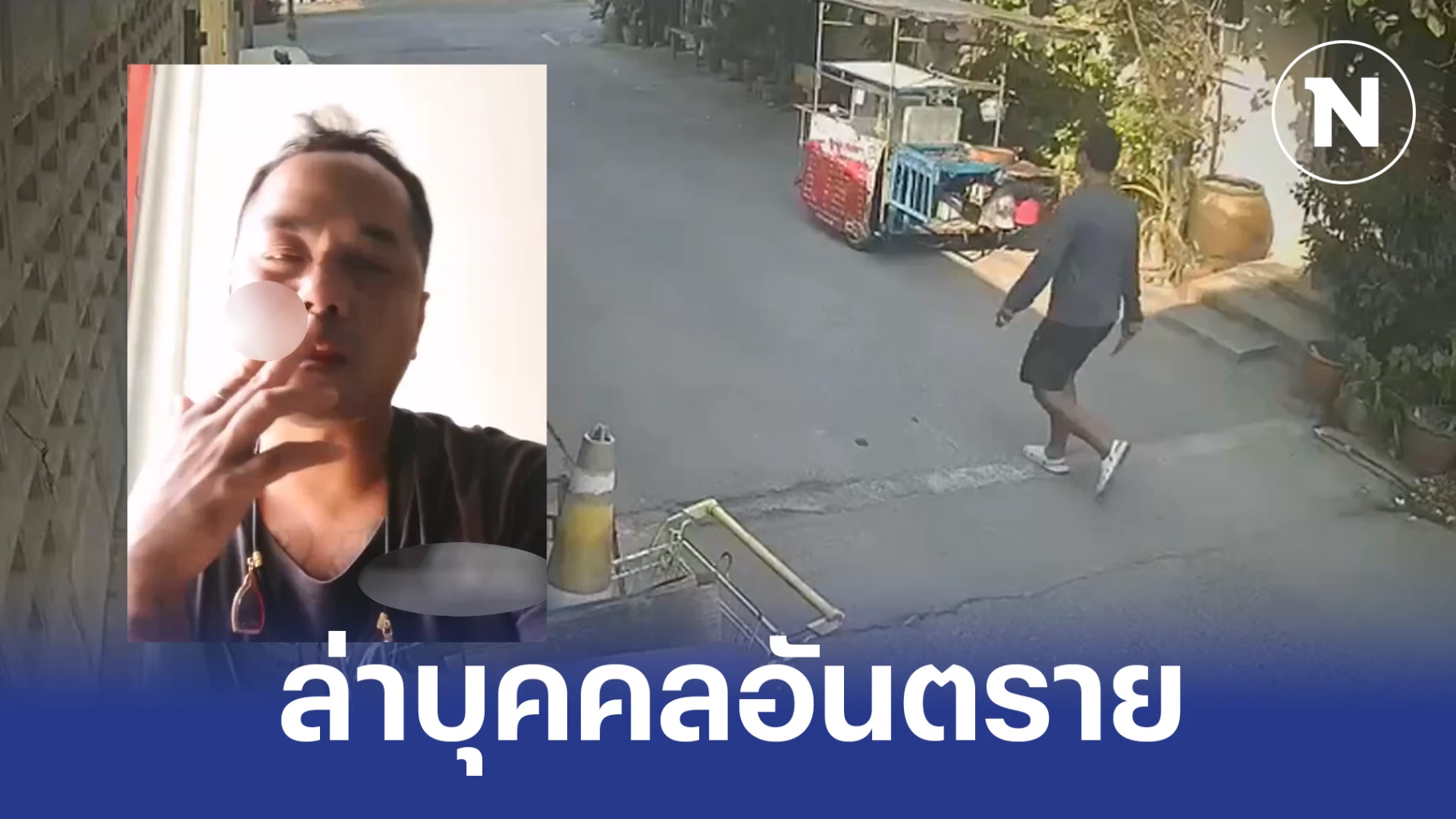 ขณะที่กล้องอีกมุม พบว่าหลังก่อเหตุ นายต้น ได้เดินออกจากบ้าน หลังเกิดเหตุ โดยในมือด้านขวา ยังถืออาวุธมีดอยู่ในมือ พอไปถึงร้านทอง หน้าปากซอย นายต้น ได้นำอาวุธมีดเข้าไปในเสื้อ เพื่อไม่ให้ใครเห็น พร้อมกับตะโกนบอก รปภ. ประจำร้านทอง ให้รีบแจ้งกู้ภัย เพราะมีคนถูกฟัน ดังกล่าว