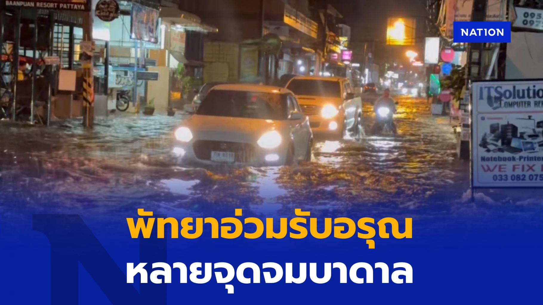 ผู้สื่อข่าวรายงานด้วยว่า ฝนตกลงมาอย่างต่อเนื่องนานกว่า 3 ชั่วโมง ส่งผลให้เมืองพัทยาและพื้นที่ใกล้เคียงหลายจุดมีน้ำท่วมขังสูง รถยนต์รถเล็กไม่สามารถสัญจรผ่านไปมาตามเส้นทางที่มีจุดน้ำท่วมได้