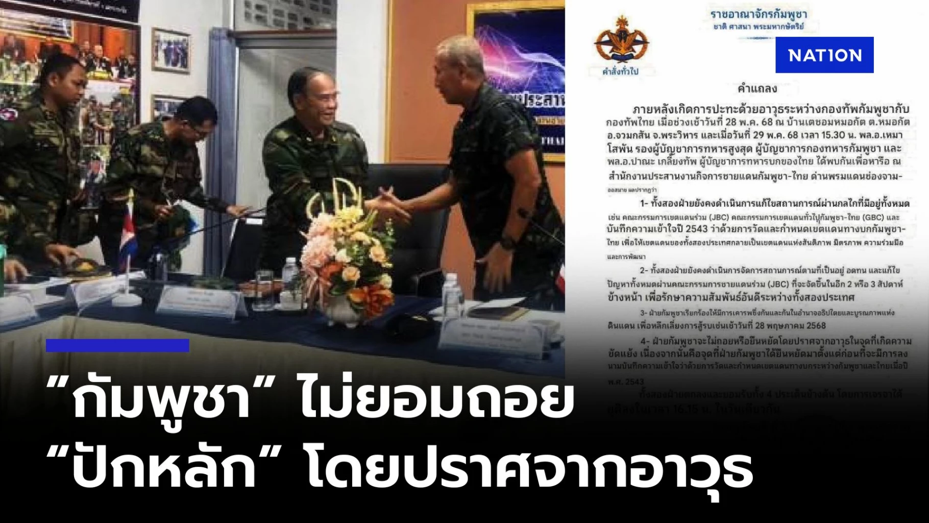 30 พฤษภาคม 2568 ล่าสุด จากเอกสารแถลงการณ์ของราชอาณาจักรกัมพูชา ลงวันที่ 29 พ.ค.68 ที่เผยแพร่ทั่วไป ระบุว่า