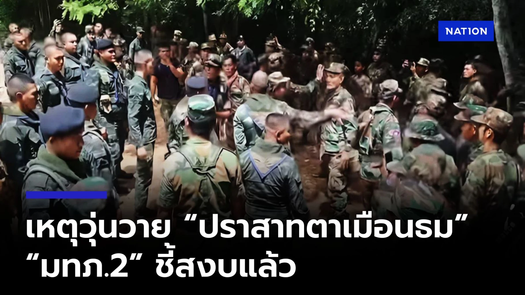 จากนั้นได้ชี้หน้าทหารไทยและใช้คำพูดที่หยาบคาย ทหารไทยจึงใช้คำพูดอธิบาย แต่นักท่องเที่ยวชาวกัมพูชาไม่ฟัง และได้นำกำลังทหารประมาณ 60 นาย มาบริเวณทางขึ้นปราสาทตาเมือนธม (บันได)