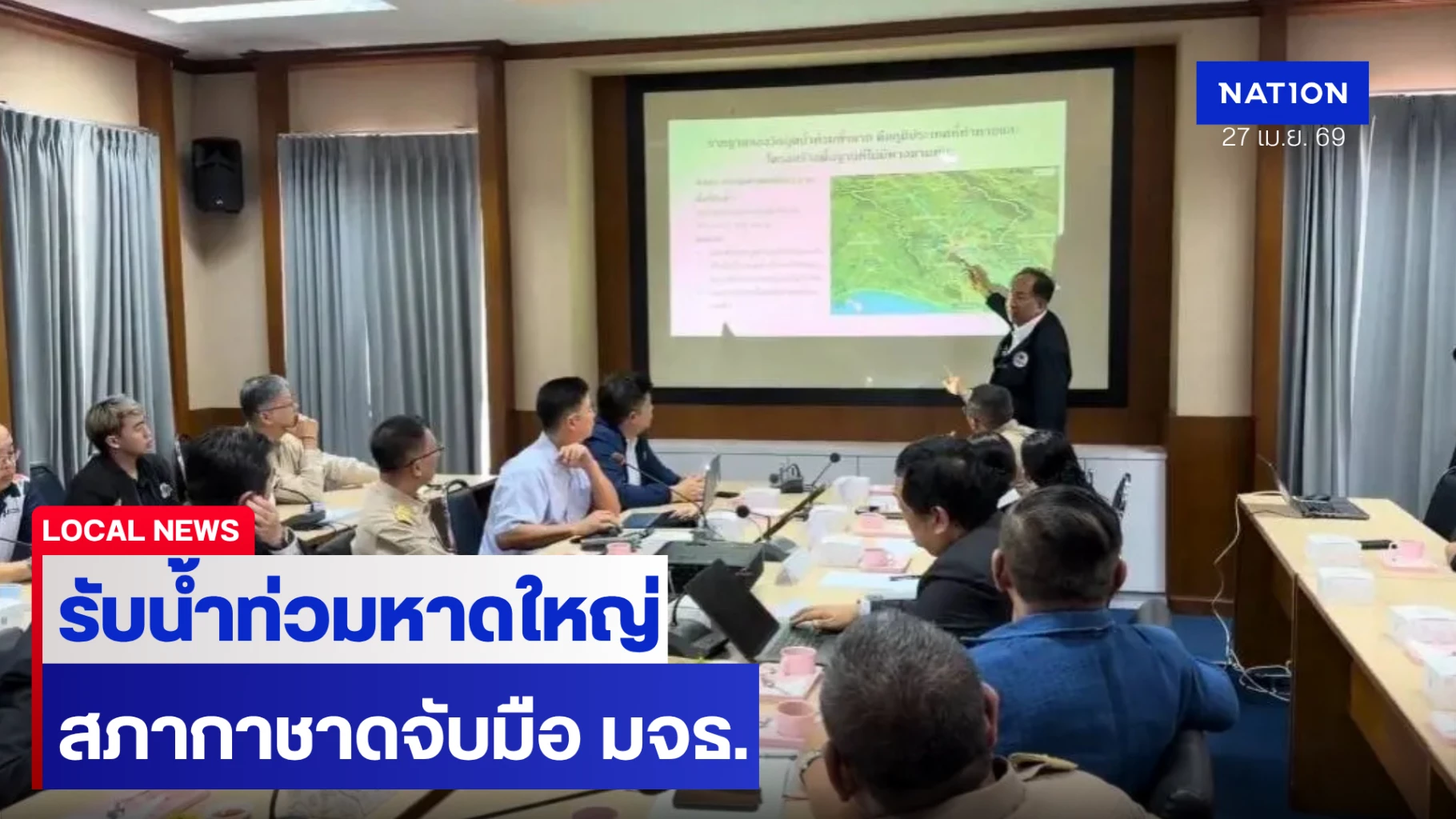 27 เมษายน 2569 ที่ ห้องประชุมที่ว่าการอำเภอหาดใหญ่ นายกฤษฎา บุญราช ผู้ช่วยเลขาธิการสภากาชาดไทยและผู้อำนวยการสำนักงานบริหารกิจการเหล่ากาชาด และคณะ พร้อมด้วย นายสังคม เกิดก่อ รองผู้ว่าราชการจังหวัดสงขลา นายเอกชัย แก้วรัตนะ นายอำเภอหาดใหญ่ คณะอาจารย์จากมหาวิทยาลัยเทคโนโลยีพระจอมเกล้าธนบุรี (มจธ.) และภาคส่วนราชการ ภาคเอกชน ภาคีเครือข่ายที่เกี่ยวข้องร่วมประชุมหารือโครงการ “แพลตฟอร์มสังเกตการณ์ความพร้อมรับมือสภาพภูมิอากาศด้วยปัญญาประดิษฐ์” เพื่อเตรียมความพร้อมรับมือน้ำท่วมหาดใหญ่ในช่วงปลายปี 2569 นี้