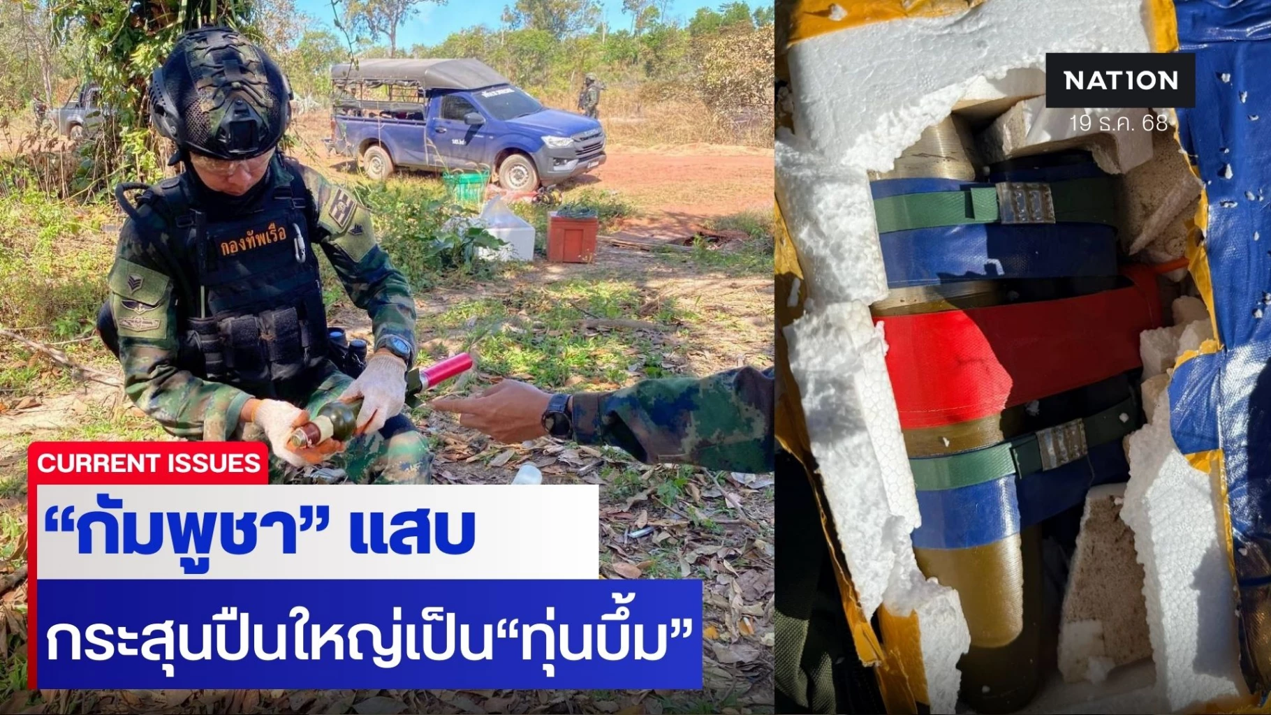 19 ธันวาคม 2568 พลเรือตรี ปารัช รัตนไชยพันธ์ โฆษกกองทัพเรือ ได้ประณามการกระทำของ ทหารกัมพูชา ที่ลักลอบวางทุ่นระเบิดสังหารบุคคลดัดแปลงจำนวนมากในพื้นที่ฐานปฏิบัติการบริเวณบ้านหนองรี (บ้านสามหลัง) ตำบลชำราก จังหวัดตราด ซึ่งเป็นดินแดนของราชอาณาจักรไทย อันเป็นการกระทำที่ขัดต่อหลักกฎหมายมนุษยธรรมระหว่างประเทศอย่างร้ายแรง