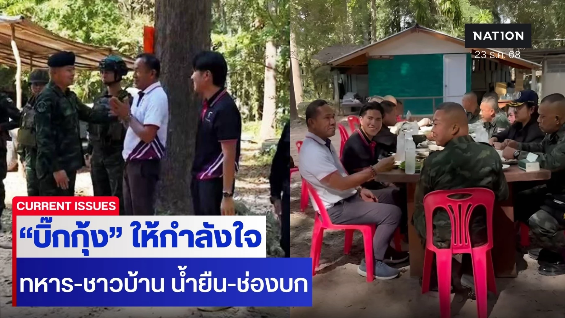 23 ธันวาคม 2568 พล.ท.บุญสิน พาดกลาง ที่ปรึกษาผู้บัญชาการทหารบก อดีตแม่ทัพภาคที่ 2 ลงพื้นที่มอบสิ่งของอุปโภคบริโภค เยี่ยมให้กำลังใจทหาร ที่ปฏิบัติหน้าที่ในพื้นที่อำเภอน้ำยืน จังหวัดอุบลราชธานี ทั้งบริเวณช่องบก และช่องอานม้า หลังจากที่ผ่านมา ต้องปฏิบัติภารกิจอย่างต่อเนื่องในการปกป้องแนวชายแดน