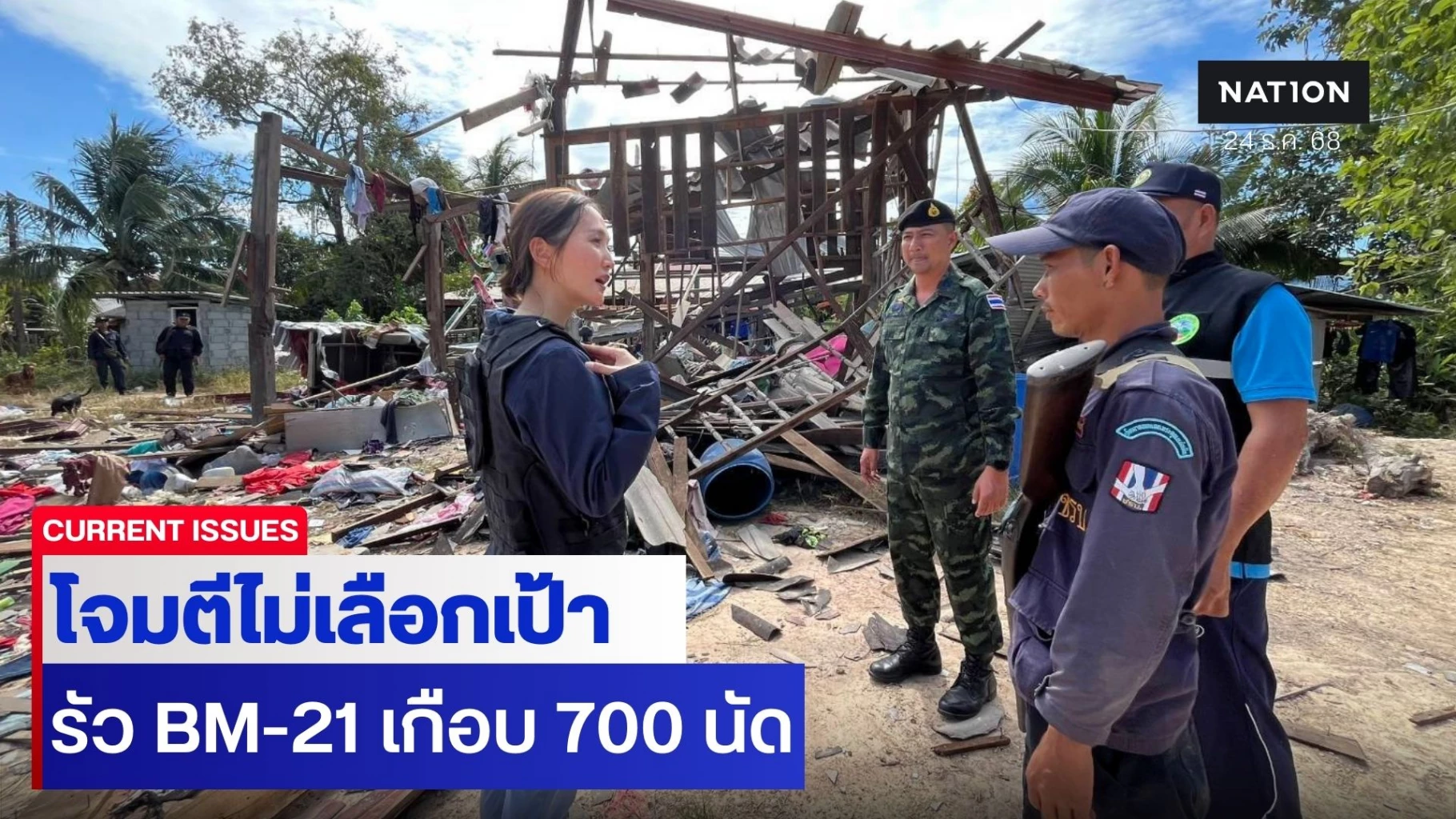 24 ธันวาคม 2568 "กองทัพภาคที่ 2" เปิดภาพความเสียหายจากการโจมตีด้วยจรวดหลายลำกล้อง (BM-21) ที่ตกกระจายเป็นวงกว้างในพื้นที่ชุมชน บ้านเรือน วัด และโรงเรียน