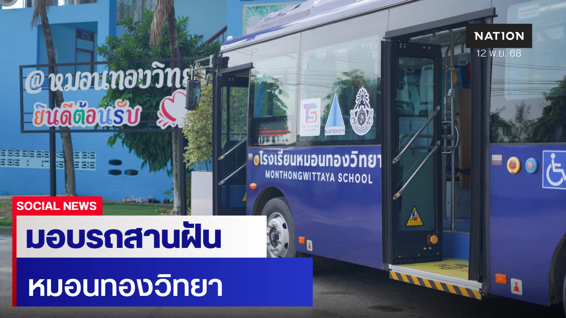 นางสาวกุลพรภัสร์ วงศ์มาจารภิญญา ประธานเจ้าหน้าที่บริหาร บริษัท ไทย สมายล์ บัส จำกัด (TSB) เดินทางไปยังโรงเรียนหมอนทองวิทยา อำเภอบางน้ำเปรี้ยว จังหวัดฉะเชิงเทรา เพื่อส่งมอบ รถบัสพลังงานไฟฟ้า EV 100% ให้แก่โรงเรียน โดยมี นายใย ยศยิ่ง ผู้อำนวยการโรงเรียน พร้อมคณะครู โค้ช และนักเตะทีมฟุตบอลโรงเรียน เป็นตัวแทนรับมอบ