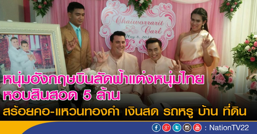 พิธีมงคลสมรส ระหว่างหนุ่มอังกฤษกับหนุ่มไทย ก็เริ่มขึ้นตามขั้นตอนของประเพณีไทยด้วยนายชัยวรฤทธิ์ แสดงตัวเป็นว่าที่เจ้าสาวได้เข้ากราบและสวดกอด พ่อและแม่ ของว่าที่เจ้าบ่าว จากนั้นทั้งสองก็แรกแหวนสวมนิ้วซึ่งกันและกัน และมีการจุมพิดกันด้วยจุ๊บปากสร้างความฮือฮายิ่งหนัก ส่วนสินสอดทั้งหมดก็นำมาแสดงต่อหน้าญาติผู้ใหญ่ของนายชัยวรฤทธิ์ มีสร้อยคอทองคำ แหวนทองคำ น้ำหนัก 50 บาท เงินสด 5 แสนบาท รถยนต์หรูยี่ห้อเซฟโรเลต รุ่น แพลทติมั่ม 1 คัน รวมทั้งบ้านและที่ดิน มูลค่ากว่า 5 ล.บ.มาเป็นสินสอด