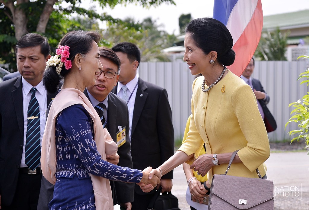 นางนราพร จันทร์โอชา ภริยานายกรัฐมนตรี พร้อมคู่สมรสคณะรัฐมนตรี นายดอน ปรมัตถ์วินัย รัฐตรีว่าการกระทรวงการต่างประเทศ นำนางออง ซาน ซูจี ที่ปรึกษาแห่งรัฐสาธารณรัฐแห่งสหภาพเมียนมา เยี่ยมชมศูนย์การเรียนรู้ชุมชนบ้านหัวอ่าว ซึ่งได้เป็นหมู่บ้าน "อยู่เย็น เป็นสุข ประจำปี 2558" และเยี่ยมชมโครงการเศรษฐกิจพอเพียง สามพรานโมเดล ที่ จ.นครปฐม