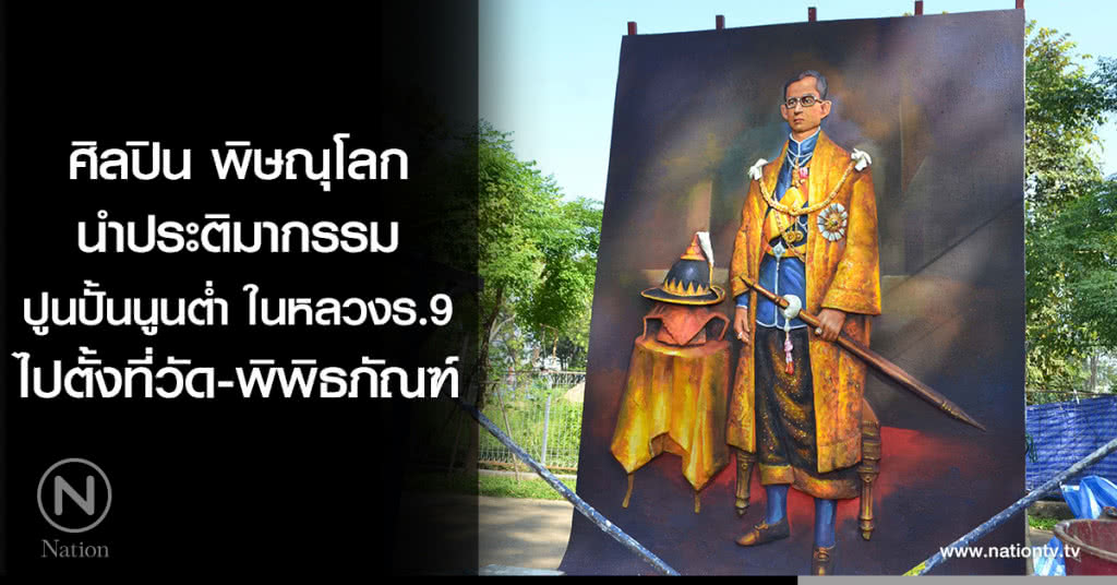 เมื่อวันที่ 28 ตุลาคม 2560 ที่บริเวณสวนกลางเมืองพิษณุโลก สถานที่จัดงานศิลป์สองแคว ๙ ตามพ่อ ที่กลุ่มศิลปินอิสระชาวพิษณุโลกจัดขึ้นระหว่างเดือนสิงหาคมถึงตุลาคม 2560 สร้างสรรค์ผลงานจิตกรรม ประติมากรรม นิทรรศการ เพื่อเทิดพระเกียรติพระบาทสมเด็จพระปรมินทรมหาภูมิพลอดุลยเดช ซึ่งขณะนี้ได้เสร็จสิ้นการจัดแสดงผลงานแล้ว โดยผลงานส่วนหนึ่ง คืองานจิตรกรรมภาพวาดในหลวงรัชกาลที่ 9 ได้นำไปตกแต่งประกอบพระเมรุมาศจำลองจังหวัดพิษณุโลก ขณะที่วันนี้ ผลงานประติมากรรม การปั้นปูนภาพนูนต่ำ 3 ชิ้น กำลังมีการเคลื่อนย้ายเพื่อไปติดตั้งไว้ ณ วัดราชบูรณะ พิพิธภัณฑ์พื้นบ้านจสอ.ทวี บูรณเขตต์ และ พิพิธภัณฑ์บัญชา