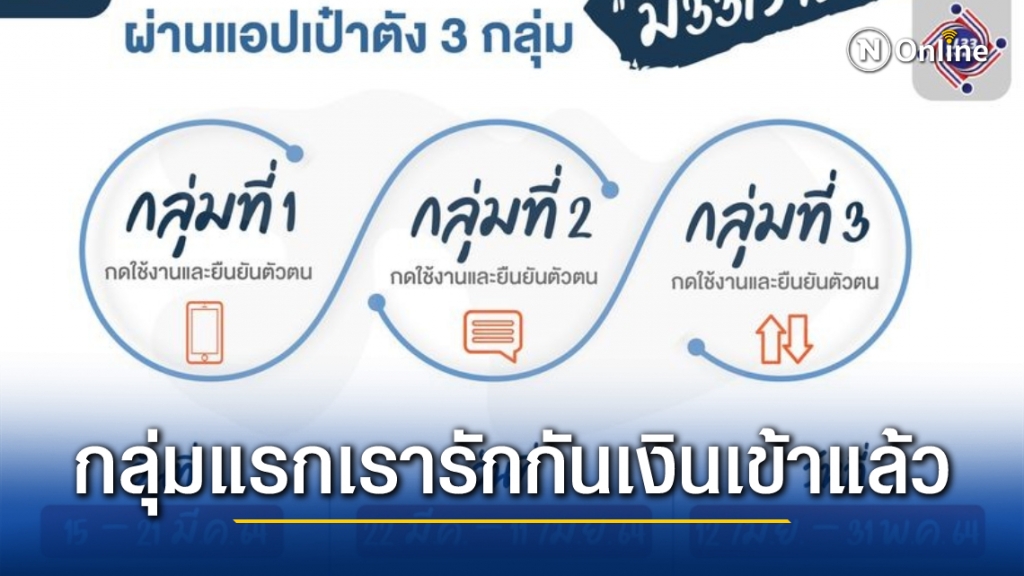 วันนี้เมื่อเวลา 06.00 น. เป็นวันแรกที่เงินจาก ม.33 เรารักกัน ถูกโอนเข้าสู่แอปพลิเคชั่น'เป๋าตัง'สำหรับผู้ที่ได้รับสิทธิ์ จำนวน 1,000 บาทกลุ่มแรก ซึ่งจะมีการโอนเงินในทุกสัปดาห์ จำนวน 4 สัปดาห์ ดังนี้