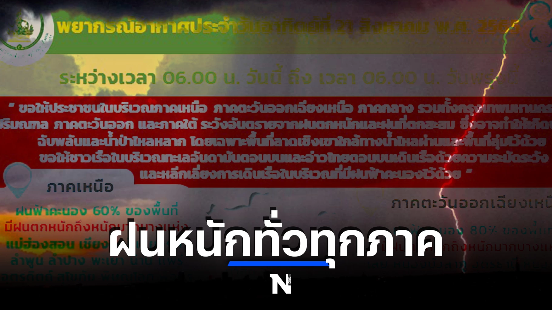 21 สิงหาคม 2565 กรมอุตุนิยมวิทยา รายงานสภาพอากาศ ประจำวันที่ 21 สิงหาคม 2565 ว่า ลักษณะอากาศทั่วไป พยากรณ์อากาศ 24 ชั่วโมงข้างหน้า ร่องมรสุมกำลังแรงพาดผ่านประเทศเมียนมา ภาคเหนือตอนบน และภาคตะวันออกเฉียงเหนือตอนบนของประเทศไทย เข้าสู่หย่อมความกดอากาศต่ำกำลังแรงบริเวณชายฝั่งประเทศเวียดนามตอนบนและอ่าวตังเกี๋ย ประกอบกับมรสุมตะวันตกเฉียงใต้ที่พัดปกคลุมทะเลอันดามัน ประเทศไทย และอ่าวไทย มีกำลังปานกลาง