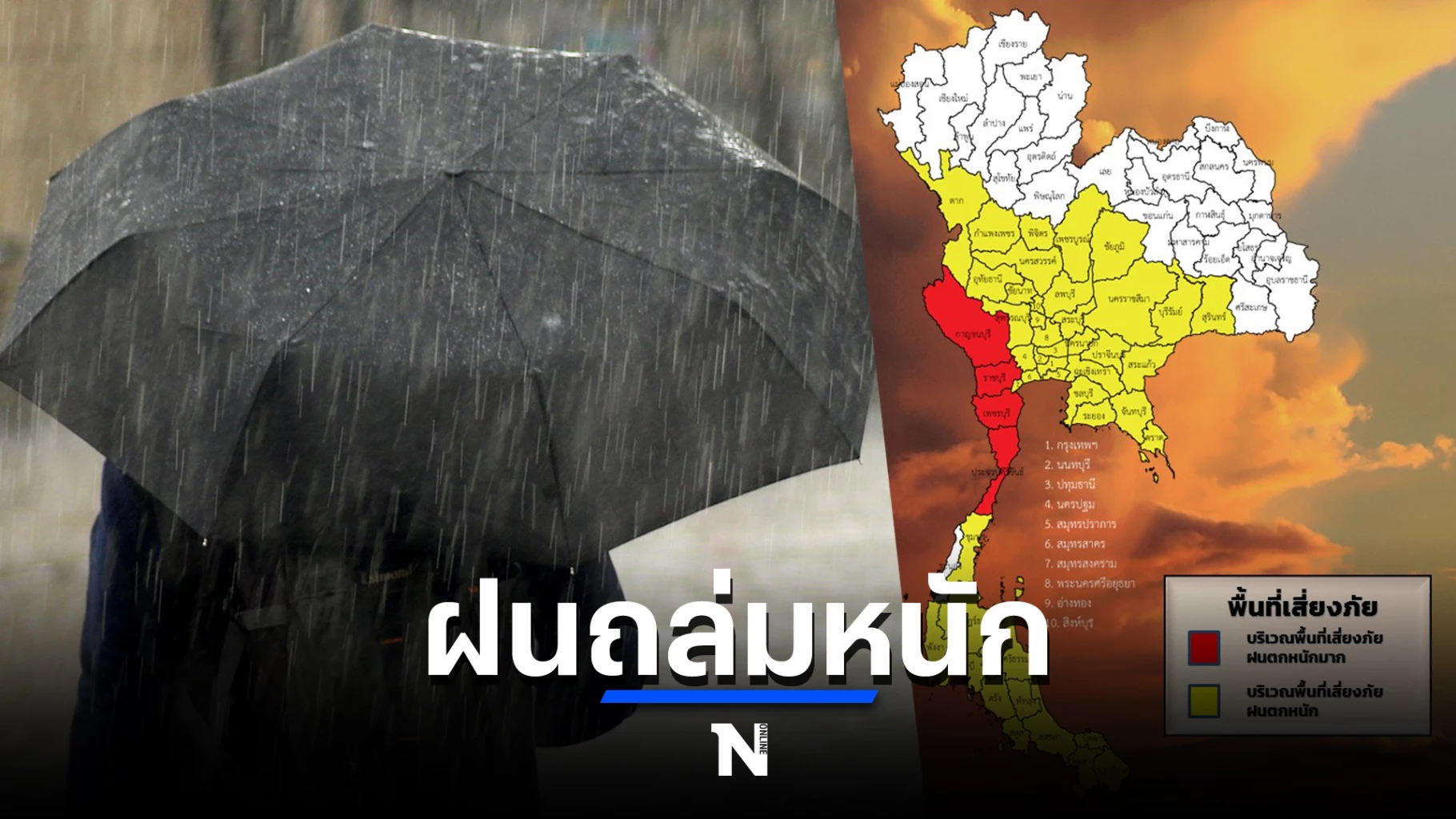 กรมอุตุฯ เปิดพื้นที่เสี่ยง ร่องมรสุมพาดผ่าน "ฝนตกหนักมาก" 44 จว. กทม.ฝน 80%