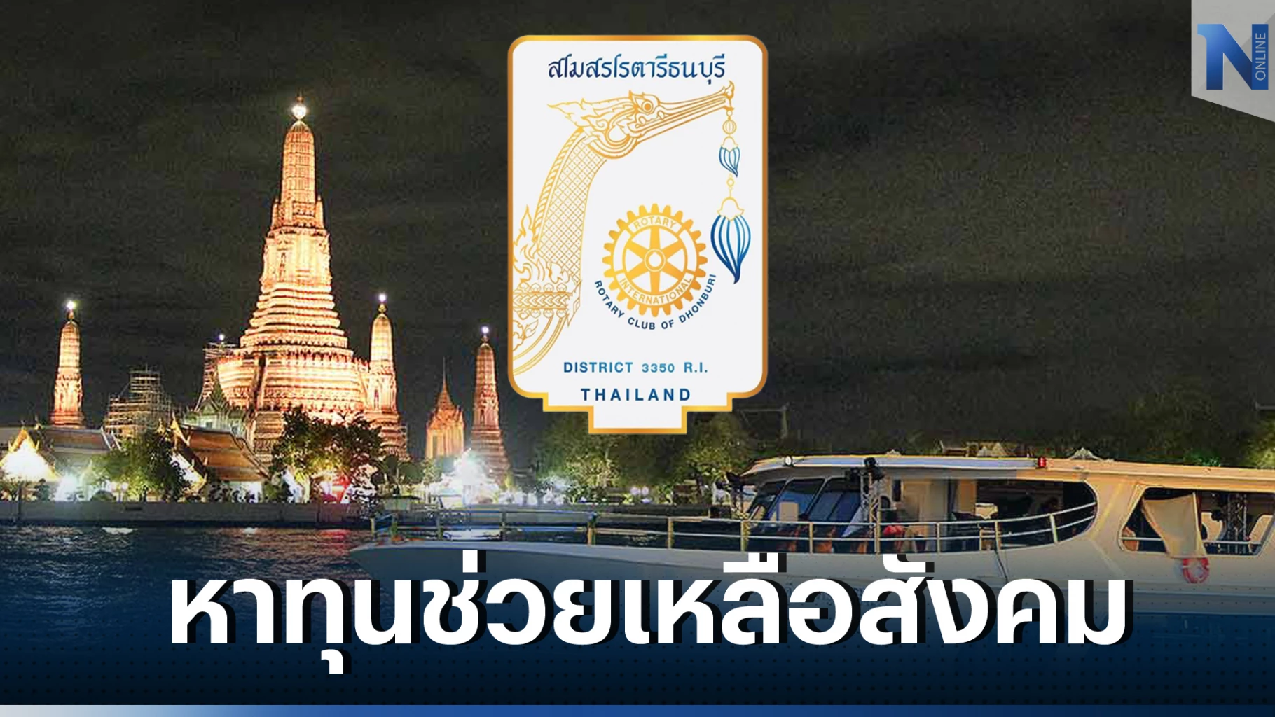 องค์กรโรตารี แหล่งรวมผู้ใจบุญ ทำสาธารณะประโยชน์ นำโดย ไพบูลย์ โกสุมขจรเกียรติ นายกสโมสรโรตารีธนบุรี จัดงานหาทุน ล่องธารา เที่ยวเจ้าพระยา ล่องเรือสุดหรู เมอริเดียน ครูซ รับประทานอาหารเลิศรส ชมบรรยากาศ สองฝั่งแม่น้ำเจ้าพระยา เพื่อนำรายได้ไปบำเพ็ญประโยชน์ให้แก่สังคม โดยในครั้งนี้เหล่าสมาชิกรวมถึงผู้ร่วมงาน จำนวนมากด้วยความรู้สึกที่อิ่มเอมใจกันถ้วนหน้า