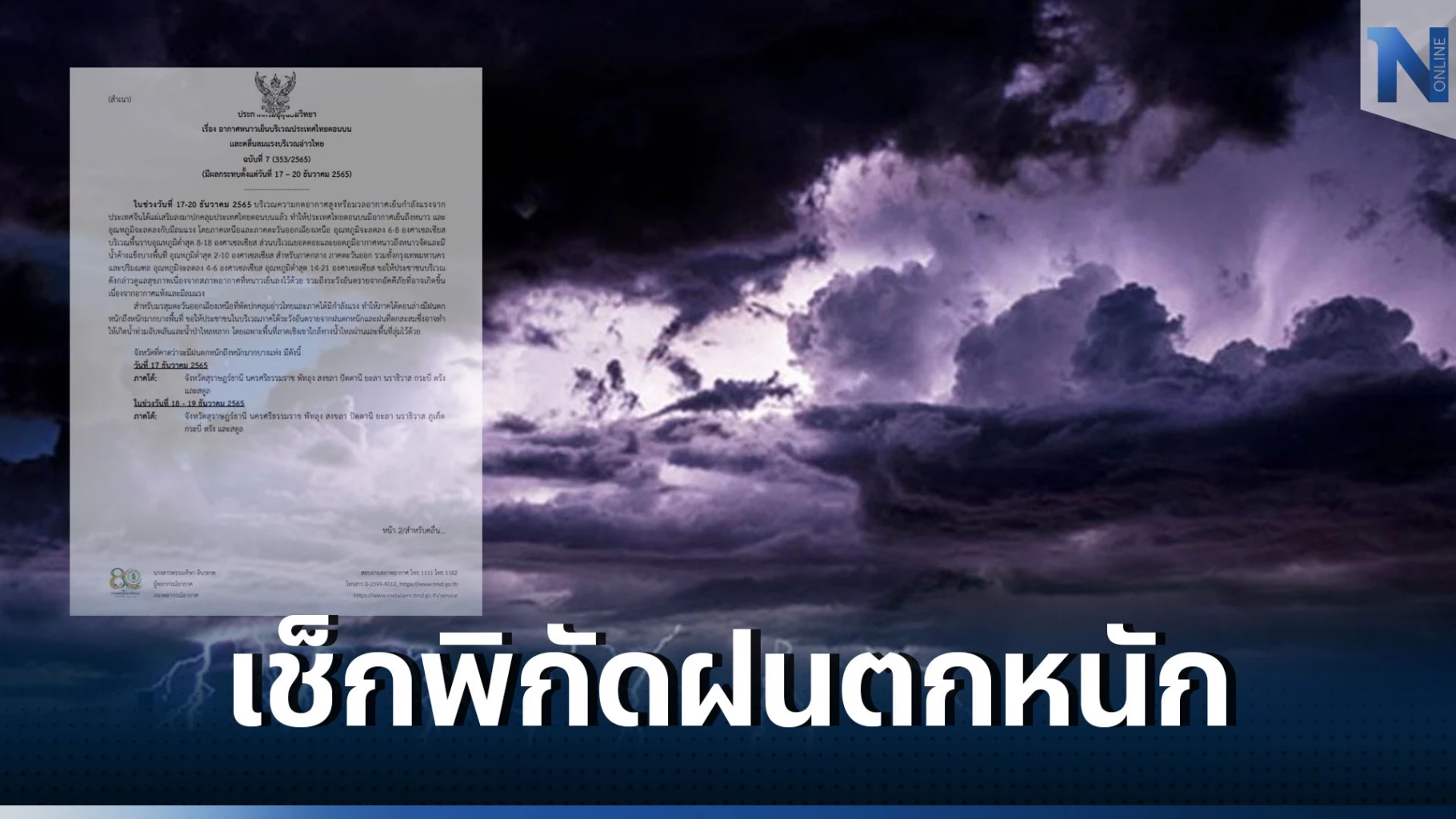 กรมอุตุนิยมวิทยาจะออกประกาศฉบับต่อไป ในวันที่ 18 ธันวาคม พ.ศ. 2565 เวลา 5.00 น.