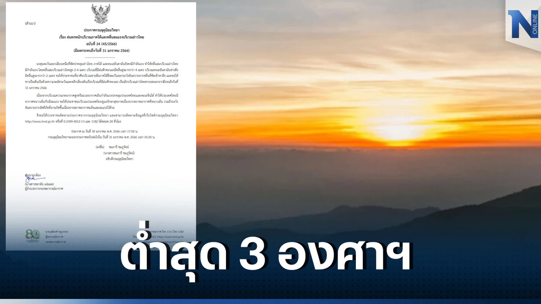 กรมอุตุนิยมวิทยาจะออกประกาศฉบับต่อไปใน วันที่ 31 มกราคม พ.ศ. 2566 เวลา 05.00 น.