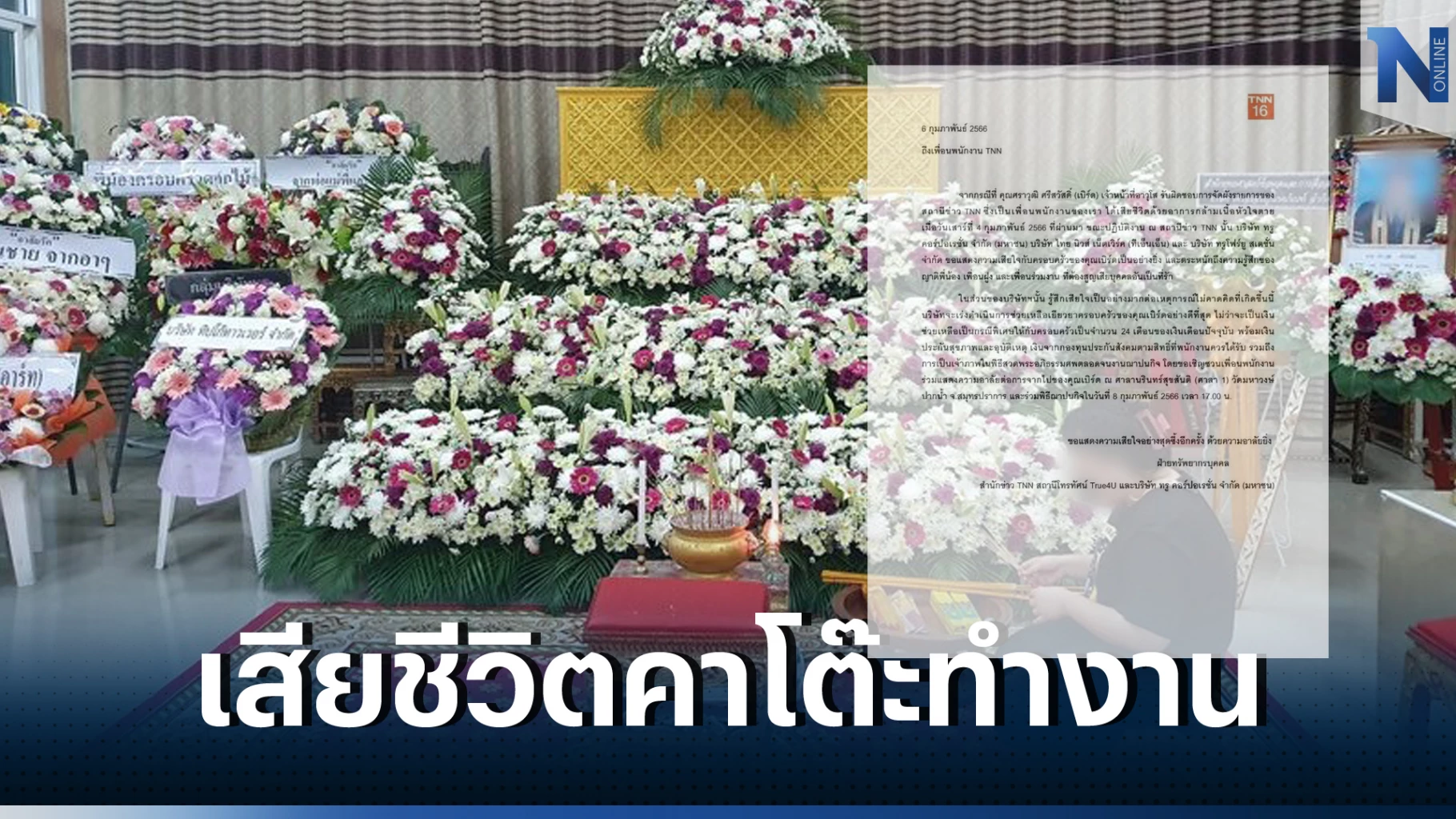 จากกรณีสุดเศร้า ในการเสียชีวิตของ "คุณเบิร์ด" หรือ คุณศราวุฒิ ศรีสวัสดิ์ (เบิร์ด) เจ้าหน้าที่อาวุโส รับผิดชอบการจัดผังรายการของสถานีข่าว TNN ที่เสียชีวิตคาโต๊ะทำงาน ด้วยอาการกล้ามเนื้อหัวใจตาย ซึ่งทางบริษัทได้เร่งดำเนินการช่วยเหลือครอบครัวของคุณเบิร์ดอย่างเต็มที่