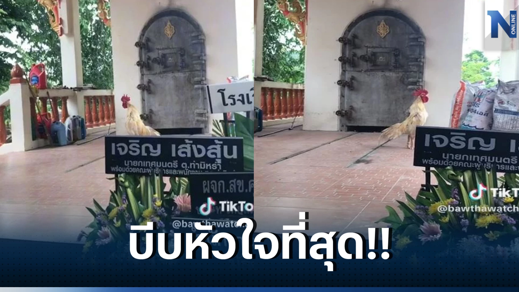 "ไก่ชนตัวที่น้องชายพี่รักมาก วันนี้..ได้รู้แล้วว่า มันก็รักน้องมากมันมาส่งน้องแล้วนะ มันขึ้นบันไดเมรุมาเองเลย หลับให้สบายน้องชายพี่"