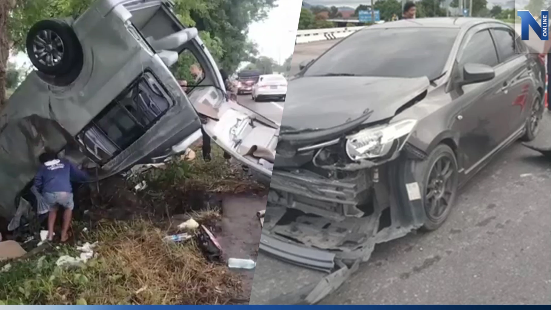 ในที่เกิดเหตุพบรถเก๋งโตโยต้า หมายเลขทะเบียน 2 กษ XX92 กรุงเทพมหานคร สภาพด้านหน้ารถได้รับความเสียหาย ไม่มีผู้ได้รับบาดเจ็บ บริเวณใกล้เคียงพบรถตู้โตโยต้า หมายเลขทะเบียน ฮง XX41 กรุงเทพมหานคร พลิกคว่ำ มีผู้บาดเจ็บจำนวน 9 ราย อาสากู้ภัยฯ จึงเร่งนำคนเจ็บทั้งหมดส่งโรงพยาบาลนครนายก