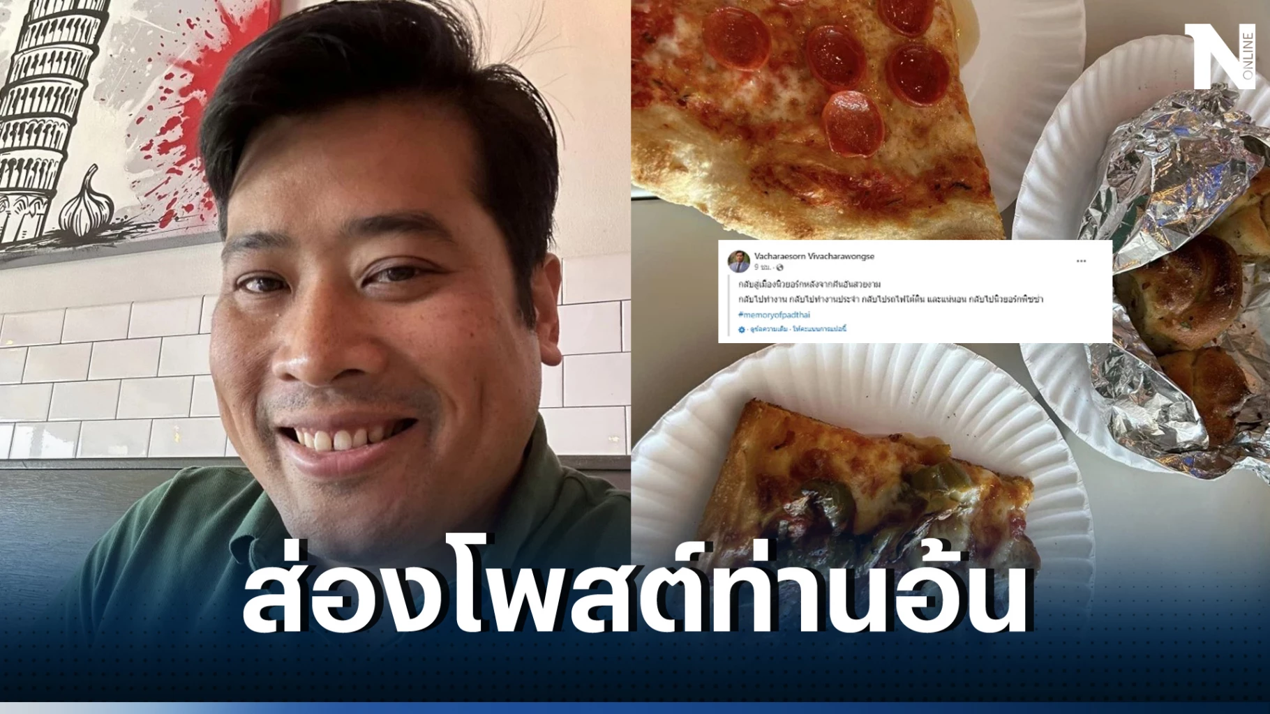 โดยท่านอ้น ได้โพสต์รูปภาพ ขณะรับประทานพิซซ่า พร้อมระบุข้อความว่า