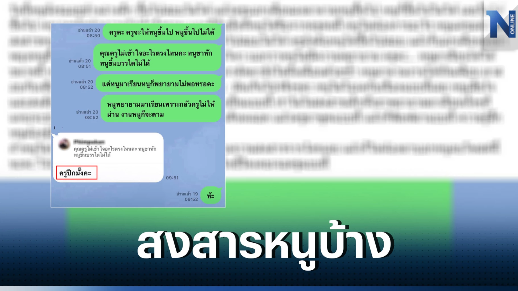 วันนี้หนูนั่งรออยู่ข้างล่างตึก ขึ้นไปสอบไม่ได้ แล้วครูบอกเพื่อนลงมาตามหนูขึ้นไป หนูก็ขึ้นไปไม่ได้ เลยไม่ได้ขึ้นไป หนูเลยทักข้อความไปย้ำอีกรอบ และนี่คือสิ่งที่หนูได้รับจากครูคนนี้ หนูไม่ต้องการอะไร หนูแค่ขอความสงสารหนูสักนิดนึงก็ยังดี