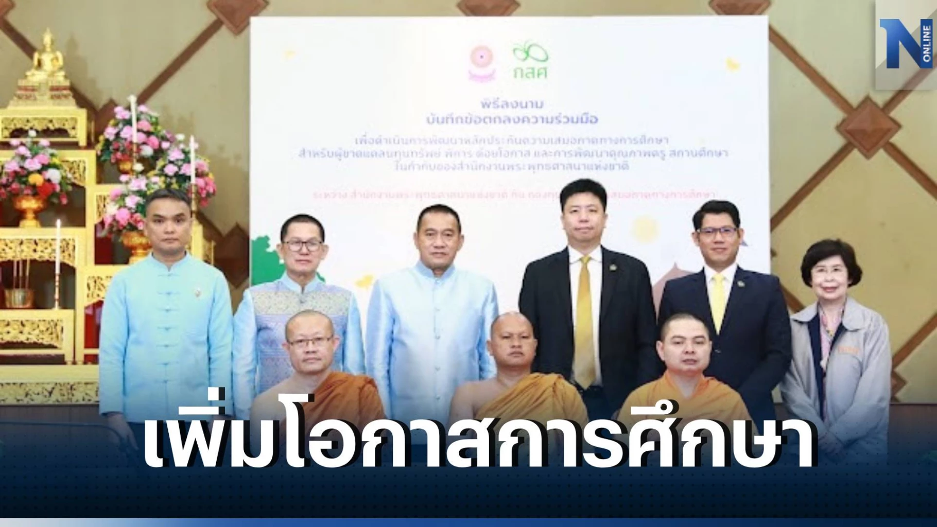วันที่ 5 กันยายน 2566 สำนักงานพระพุทธศาสนาแห่งชาติ (พศ.) และกองทุนเพื่อความเสมอภาคทางการศึกษา (กสศ.) ได้ลงนามบันทึกข้อตกลงความร่วมมือ (MOU) เพื่อดำเนินการพัฒนาหลักประกันความเสมอภาคทางการศึกษา สำหรับผู้ขาดแคลนทุนทรัพย์ พิการ ด้อยโอกาส และการพัฒนาคุณภาพครู สถานศึกษาในกำกับของสำนักงานพระพุทธศาสนาแห่งชาติ เพิ่มโอกาสทางการศึกษาให้นักเรียนสามเณรเข้าถึงการศึกษาภาคบังคับ เสริมสร้างกำลังใจให้ก้าวไปเรียนต่อในระดับการศึกษาที่สูงขึ้น