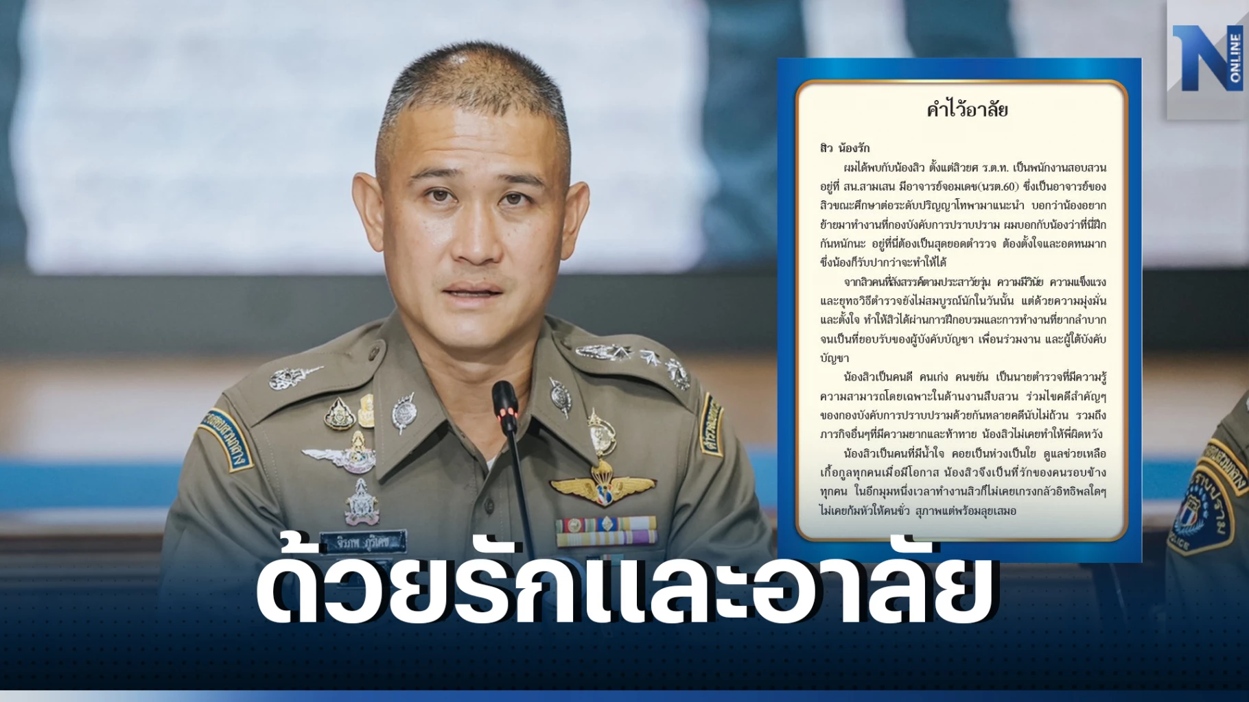 ในฐานะผู้บังคับบัญชาและพี่ชายคนหนึ่ง พี่รู้สึกภูมิใจและเป็นเกียรติที่ได้ร่วมงานกับตำรวจน้ำดีอย่างน้องสิว แม้น้องสิวจะจากไปก่อนวัยอันควร พี่ขอให้กุศลผลบุญและคุณงามความดีที่น้องได้สะสมไว้เมื่อครั้งยังมีชีวิตอยู่ ดลบันดาลให้ดวงวิญญาณของน้องไปสู่สุคติในภพภูมิที่ดีด้วยเทอญ สิวจะอยู่ในใจพี่ ๆ และ เพื่อน ๆ ทุกคนตลอดไป