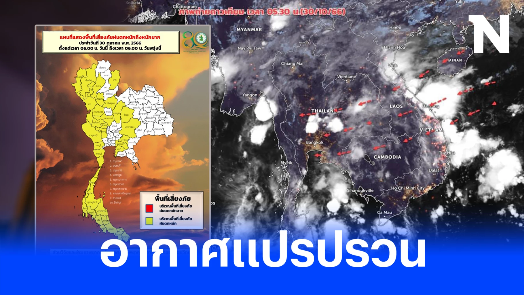 30 ตุลาคม 2566 พยากรณ์อากาศวันนี้ "ฝนฟ้าคะนอง" กรมอุตุนิยมวิทยา เปิดภาพถ่ายดาวเทียมเช้าวันที่ 30 ต.ค.66 พบว่า เมฆฝนปกคลุมบางส่วนของภาคกลาง และภาคใต้ฝั่งอ่าวไทย วันนี้ยังเป็นอีกวันที่ยังต้องรับมือฝนและฝนฟ้าคะนอง ช่วงเปลี่ยนถ่ายฤดู เมื่อมวลอากาศเย็นเริ่มแผ่ลงมา ปะทะอากาศร้อนชื้น ทำให้มีฝนฟ้าคะนองระยะแรกๆ ลมหนาวจะเริ่มพัดมา