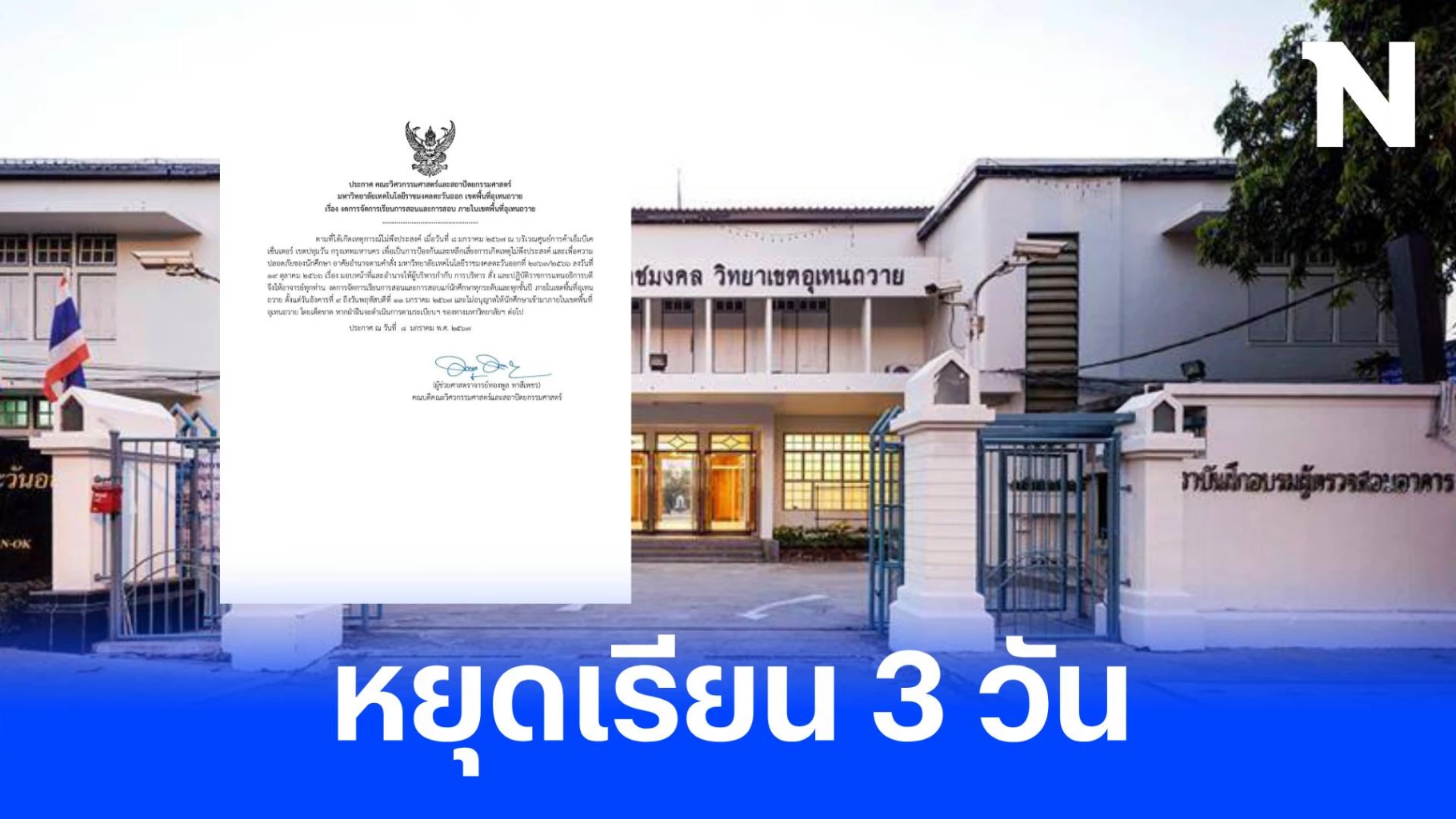 จึงให้อาจารย์ทุกท่าน #งดการจัดการเรียนการสอนและการสอบแก่นักศึกษาทุกระดับและทุกชั้นปี ภายในเขตพื้นที่อุเทนถวาย ตั้งแต่วันอังคารที่ 9 ถึงวันพฤหัสบดีที่ 11 มกราคม 2567 และไม่อนุญาตให้นักศึกษาเข้ามาภายในเขตพื้นที่อุเทนถวาย โดยเด็ดขาด หากฝ่าฝืนจะดำเนินการตามระเบียบฯ ของทางมหาวิทยาลัยฯ ต่อไป