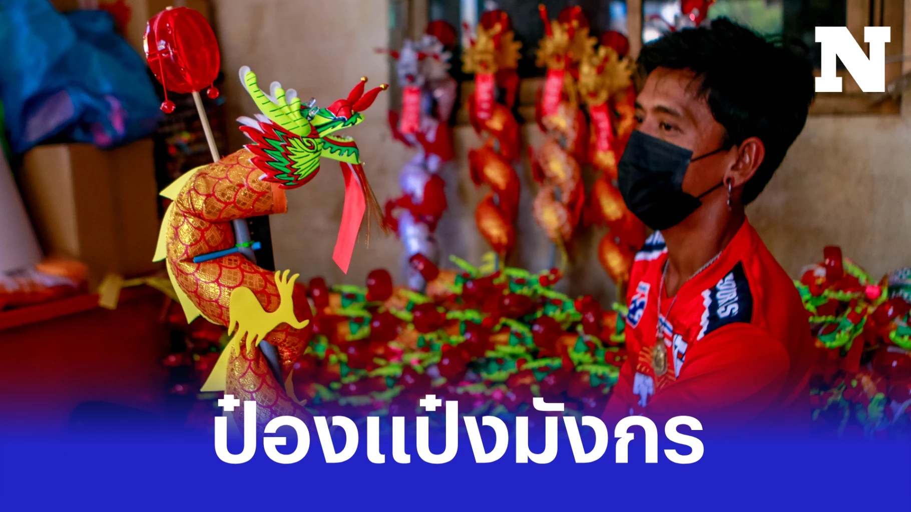 ที่ จ.นครสวรรค์ นายนพพล แซ่อึ้ง และภรรยา เร่งนำชิ้นส่วนต่างๆ ของมังกรและสิงโตมาประกอบทำป๋องแป๋ง เพื่อเตรียมออกขายในงานเทศกาลตรุษจีนที่จะถึงนี้